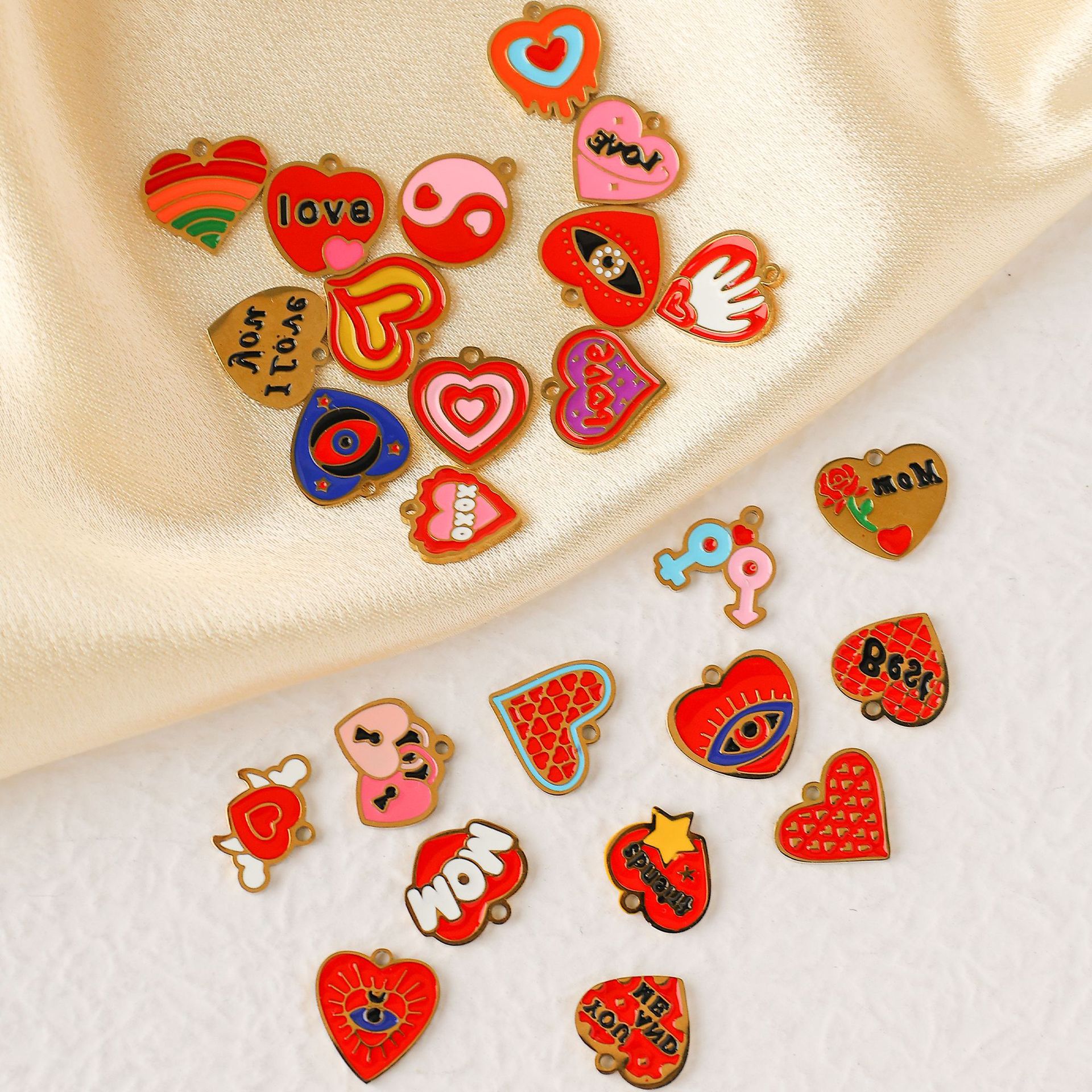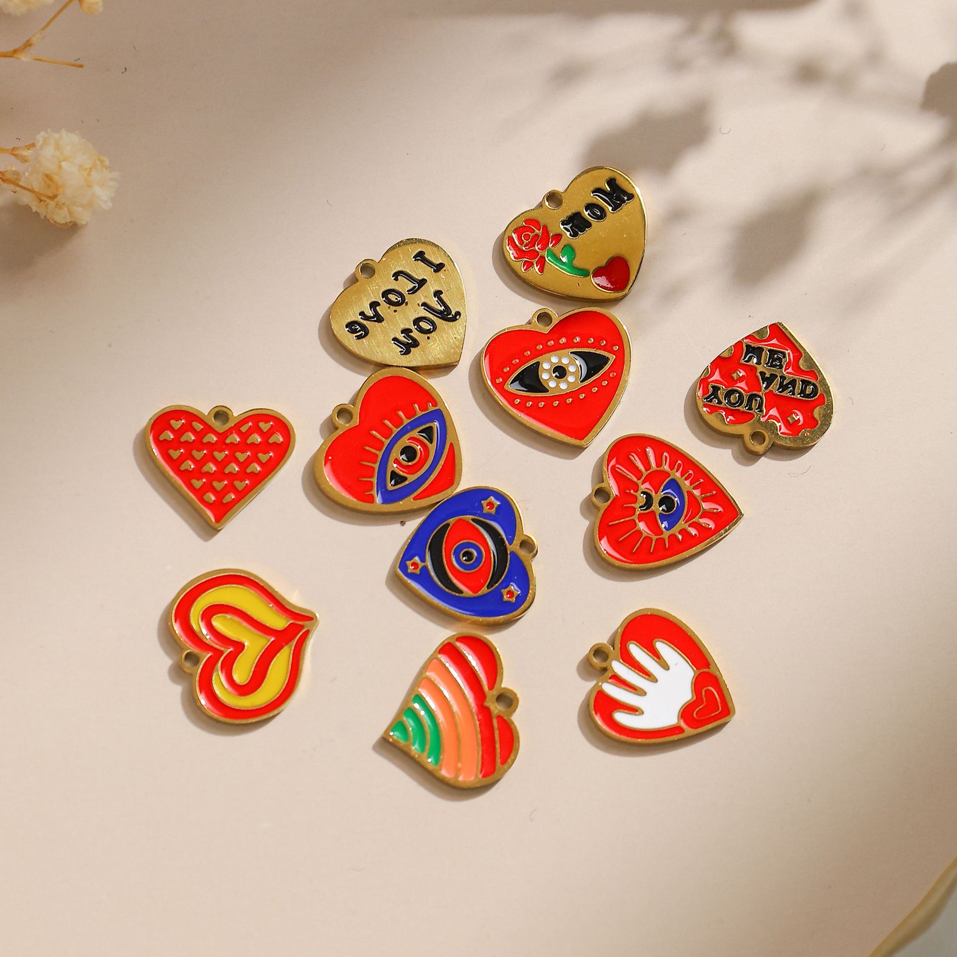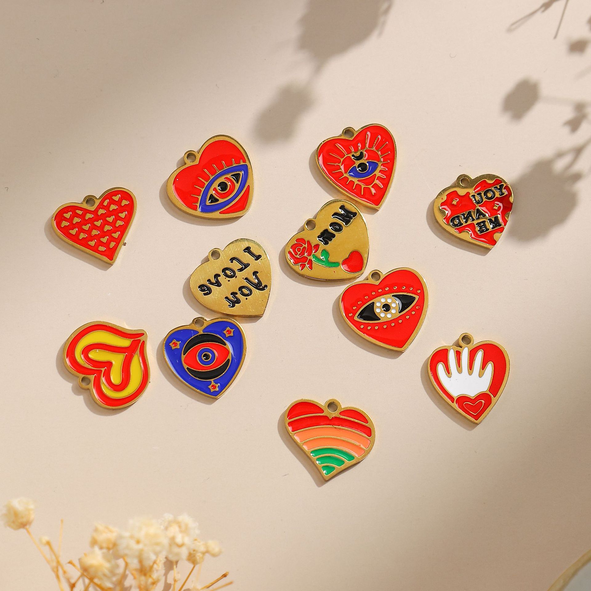 Enamel Stainless Steel Pendant, 304 Stainless Steel, Heart, Vacuum Ion Plating, DIY & different size for choice, more colors for choice, 10PCs/Bag, Sold By Bag