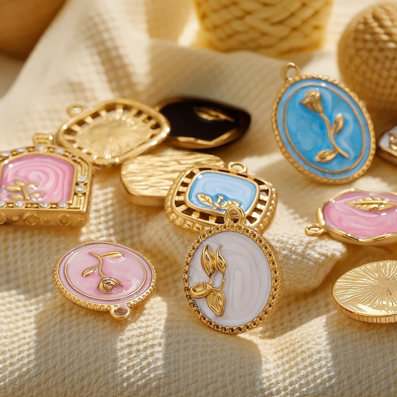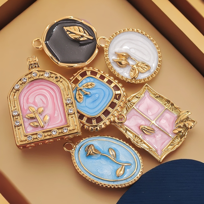 Enamel Stainless Steel Pendant, 304 Stainless Steel, gold color plated, DIY