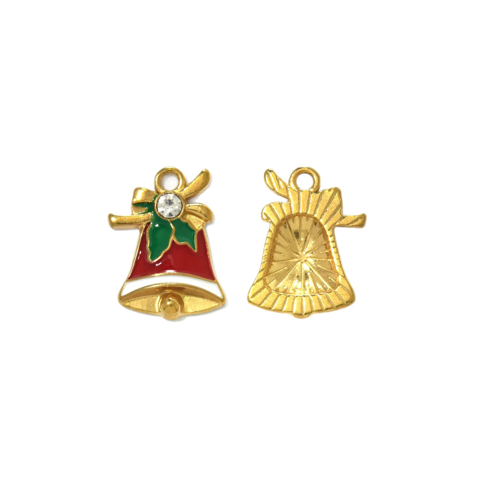 Enamel Stainless Steel Pendant, 304 Stainless Steel, gold color plated, Christmas Design & DIY & with rhinestone, more colors for choice, 10PCs/Bag, Sold By Bag
