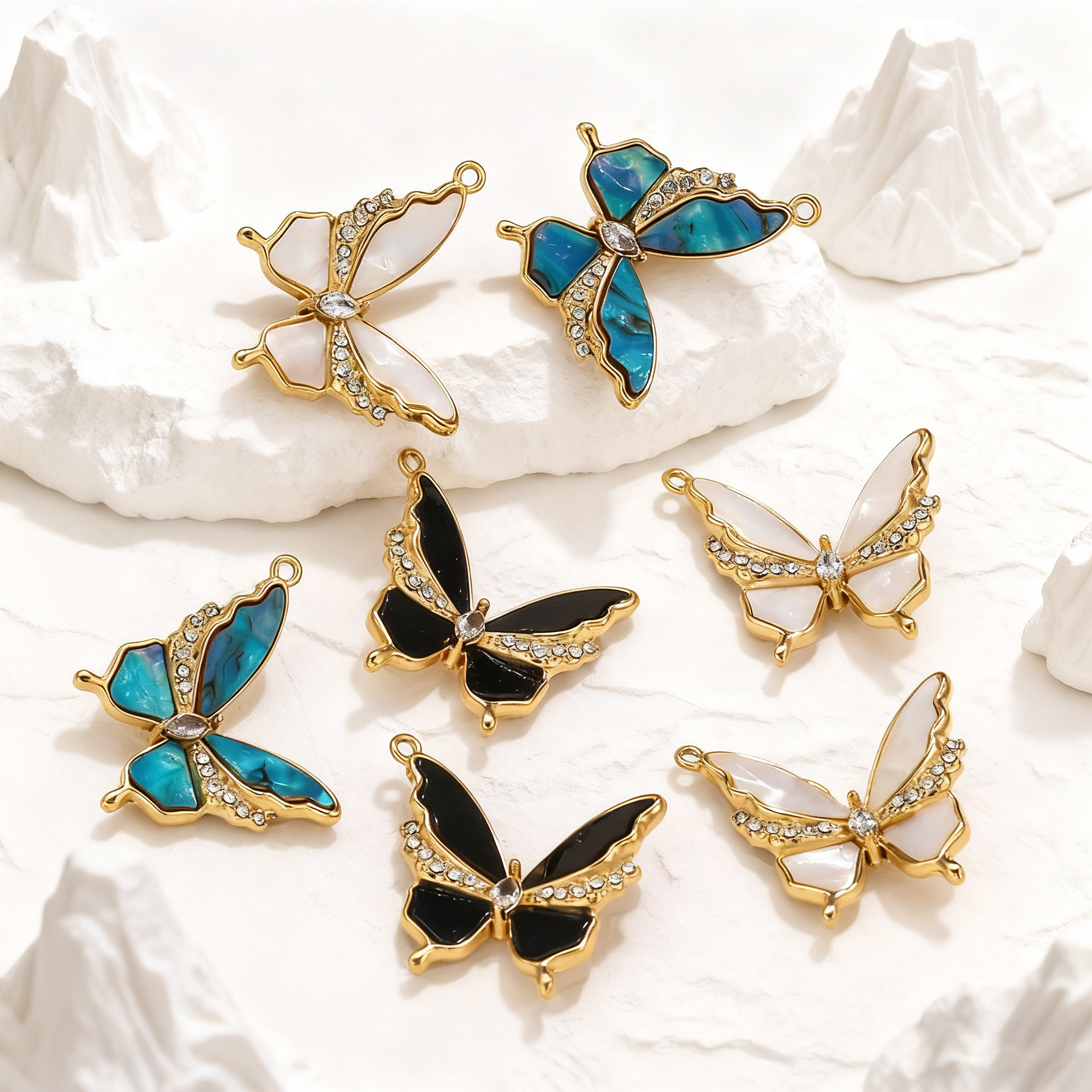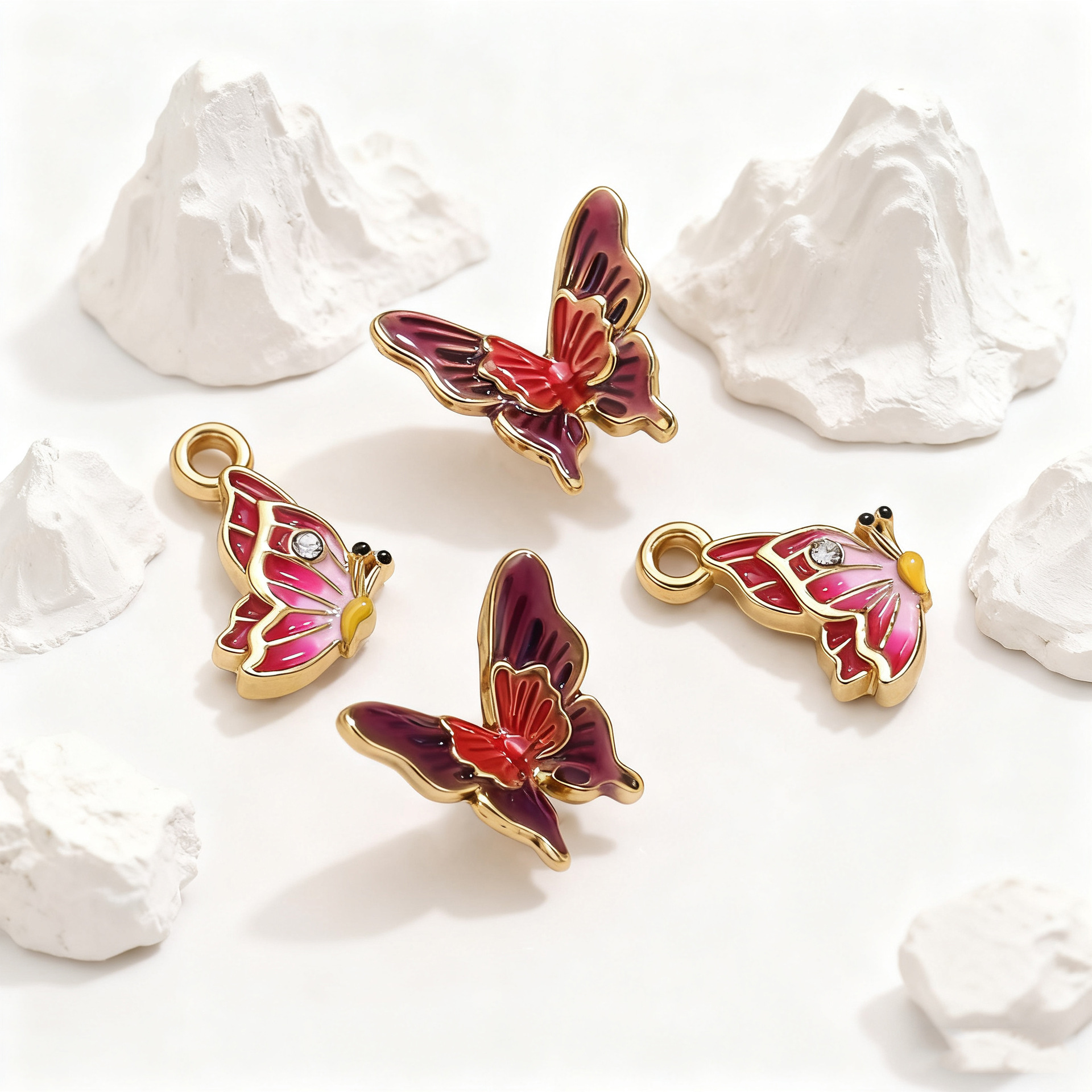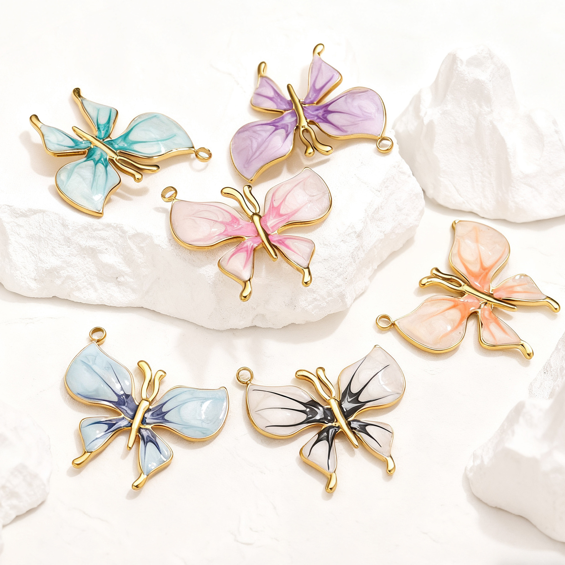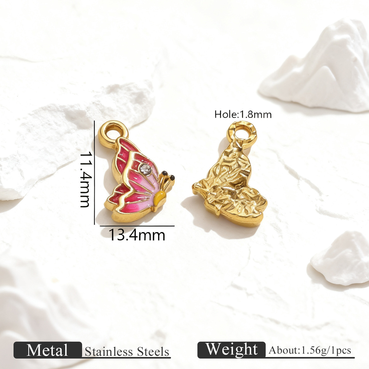 Enamel Stainless Steel Pendant, 304 Stainless Steel, Butterfly, gold color plated, DIY & different styles for choice & with rhinestone, 5PCs/Bag, Sold By Bag