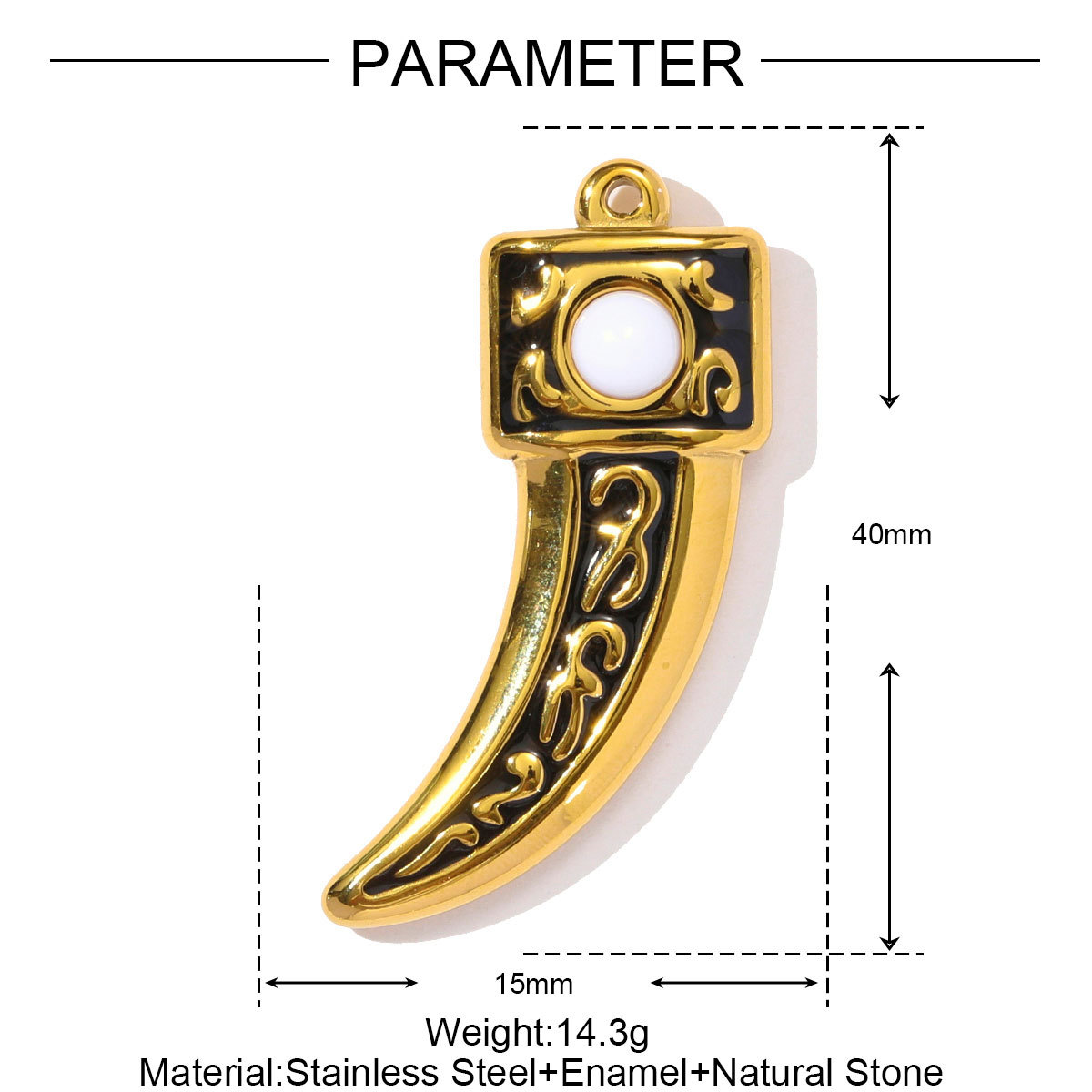 Enamel Stainless Steel Pendant, 304 Stainless Steel, with Natural Stone & ABS Plastic Pearl & Cats Eye, gold color plated, DIY, more colors for choice, 3PCs/Bag, Sold By Bag