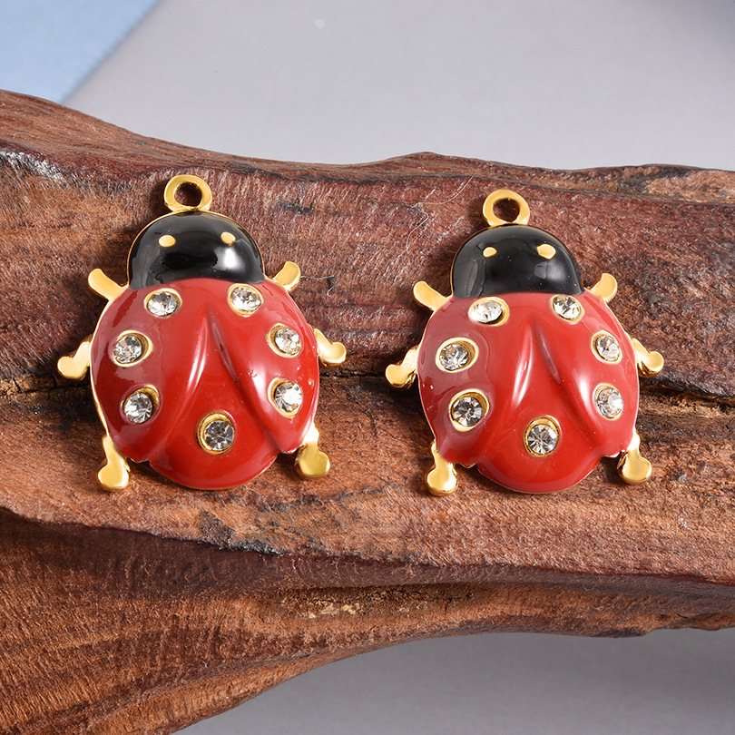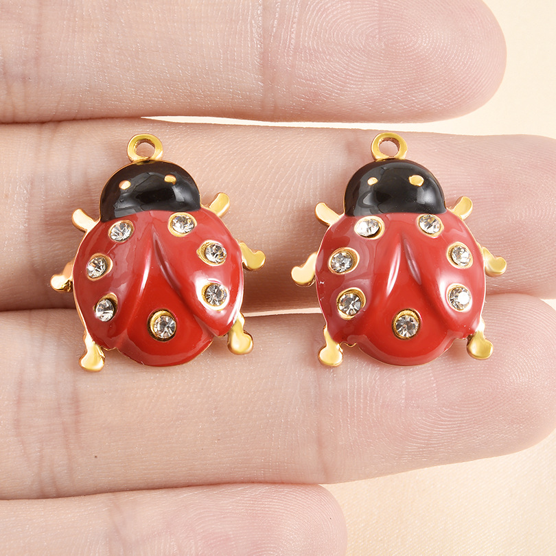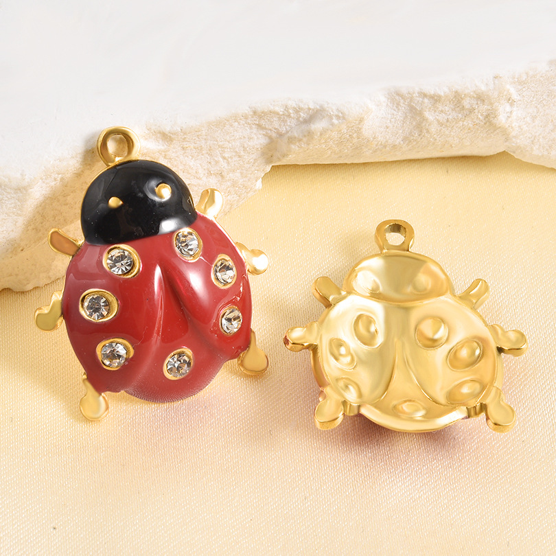 Enamel Stainless Steel Pendant, 304 Stainless Steel, Insect, gold color plated, DIY & with rhinestone, more colors for choice, 10PCs/Bag, Sold By Bag