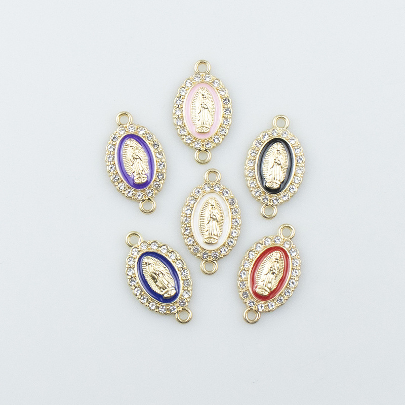 Enamel Zinc Alloy Connector, gold color plated, DIY & with rhinestone & 1/1 loop, more colors for choice, 14x24mm, Sold By PC