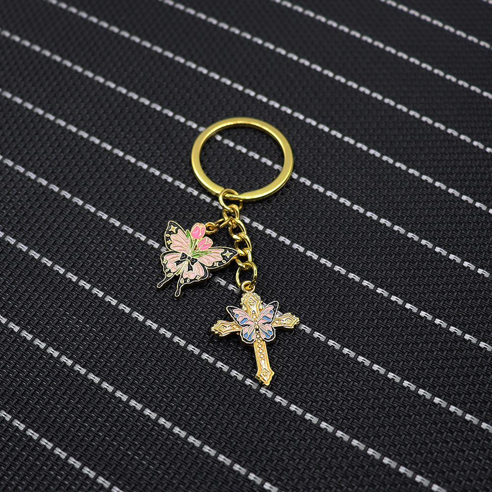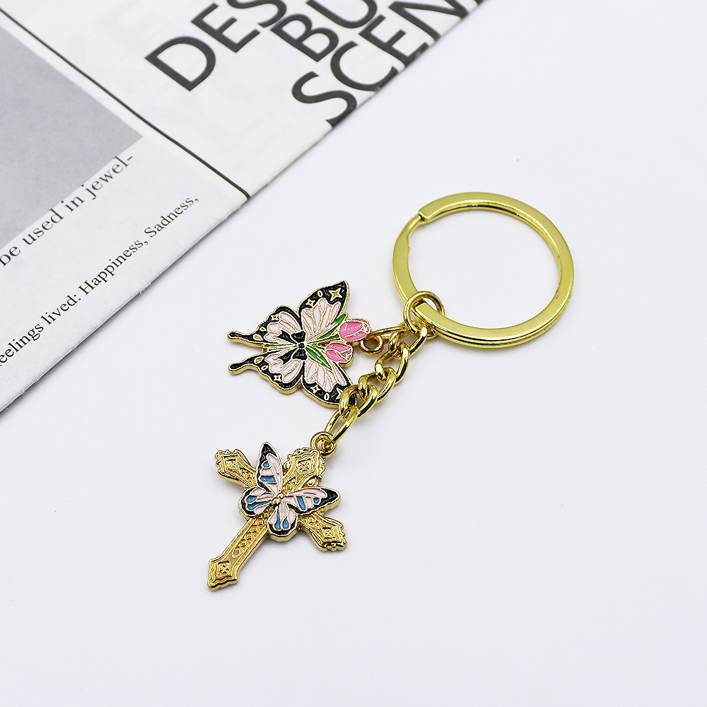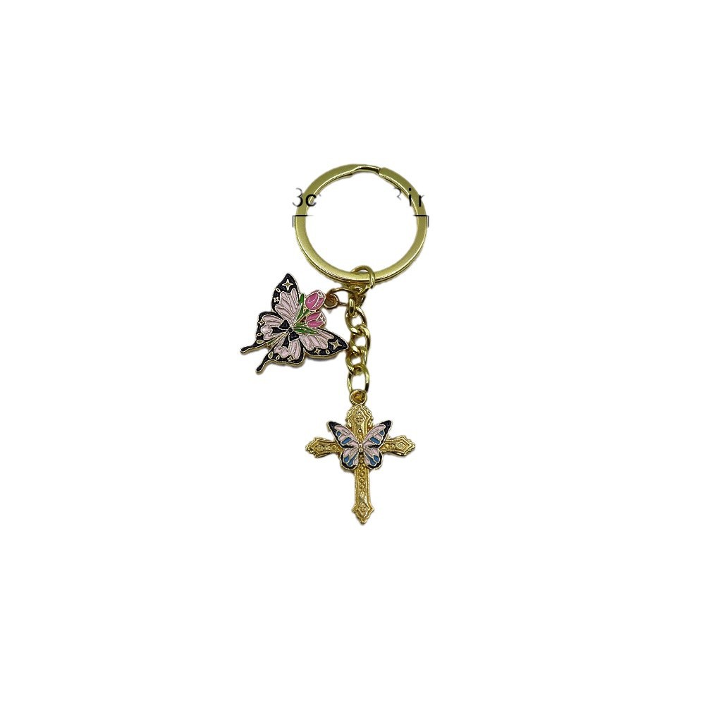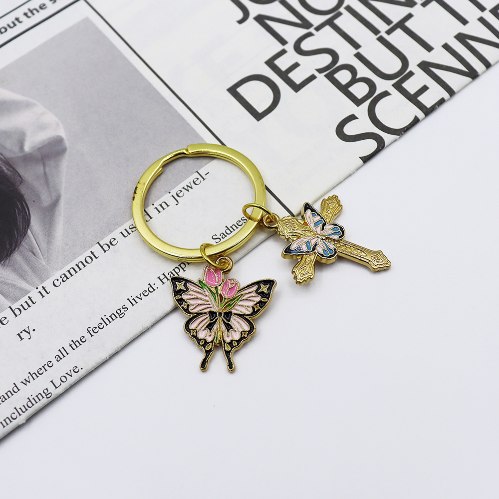 Enamel Zinc Alloy Key Chain, Butterfly, platinum color plated, with rhinestone nickel, lead & cadmium free Approx 26mm Approx 3.7 Inch