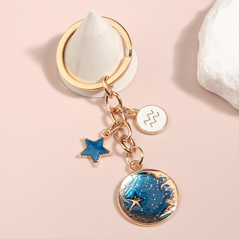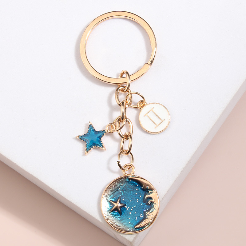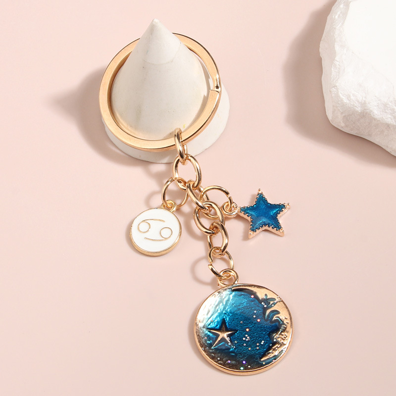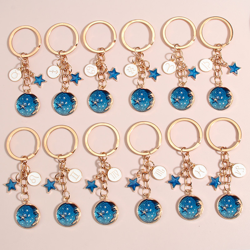 Enamel Zinc Alloy Key Chain, 12 Signs of the Zodiac, gold color plated, Unisex & different styles for choice, 100x30mm, Sold By PC
