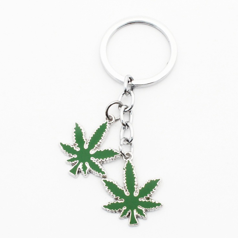 Enamel Zinc Alloy Key Chain, Marijuana Leaf, platinum color plated, nickel, lead & cadmium free 90mm Approx 26mm Approx 3.5 Inch