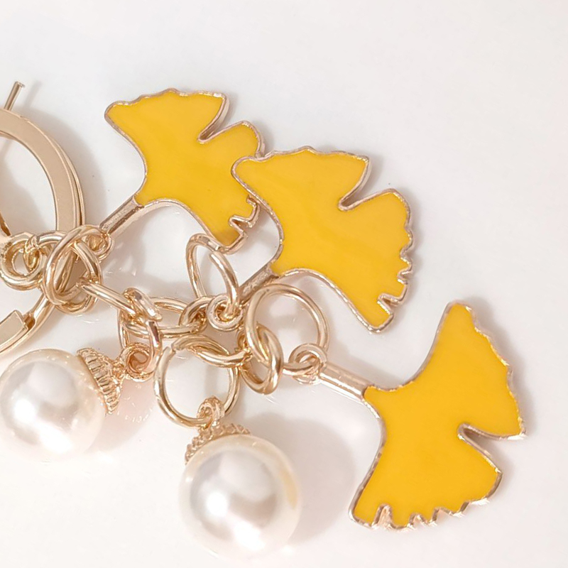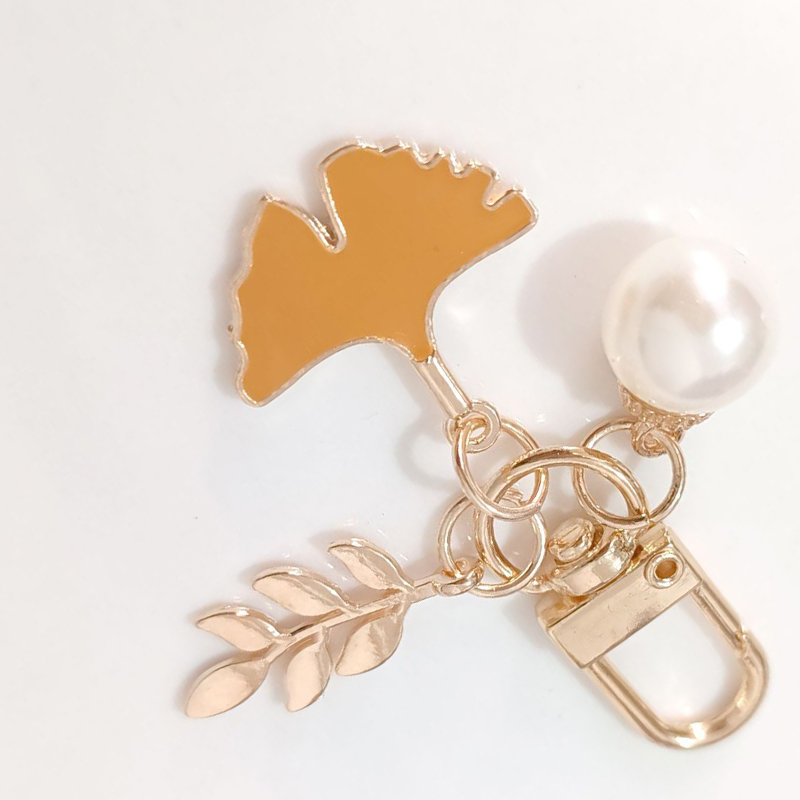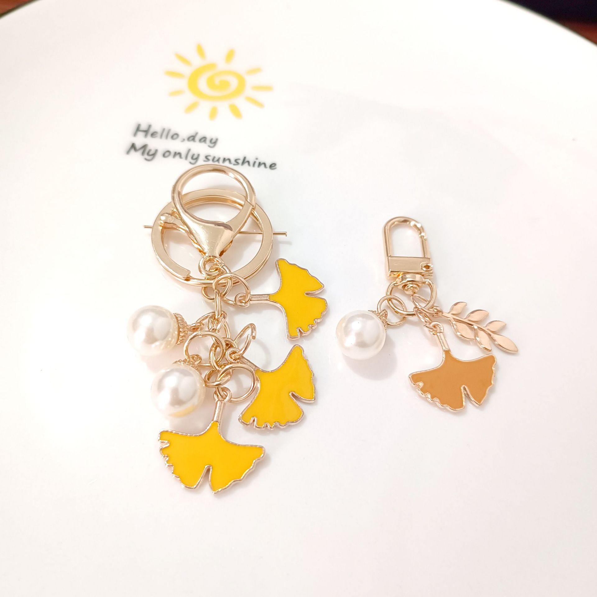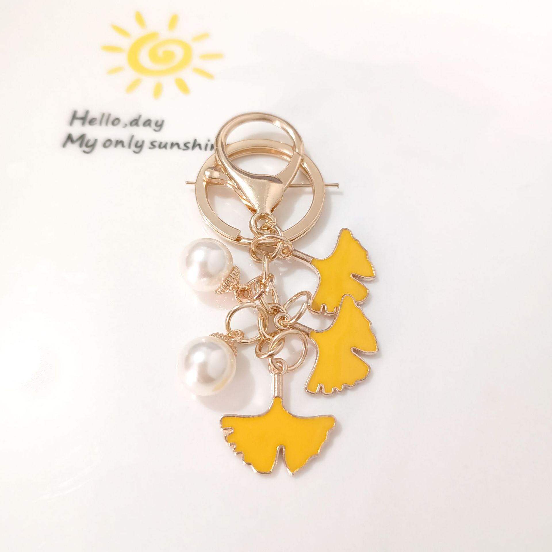 Enamel Zinc Alloy Key Chain, with Plastic Pearl, Ginkgo Leaf, gold color plated, Unisex & different styles for choice, Sold By PC