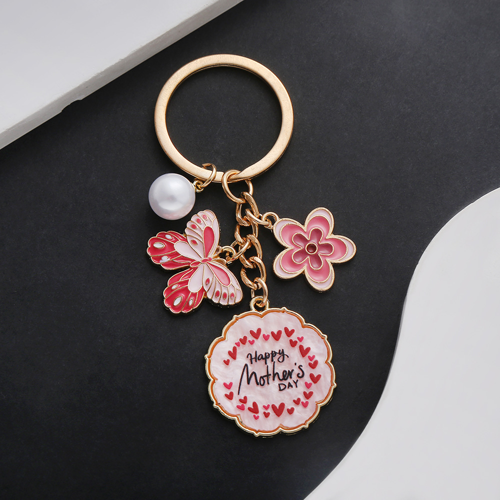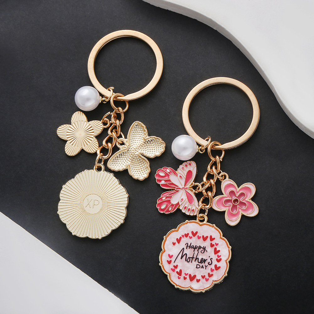 Enamel Zinc Alloy Key Chain, with Plastic Pearl, gold color plated, fashion jewelry, more colors for choice, Sold By PC