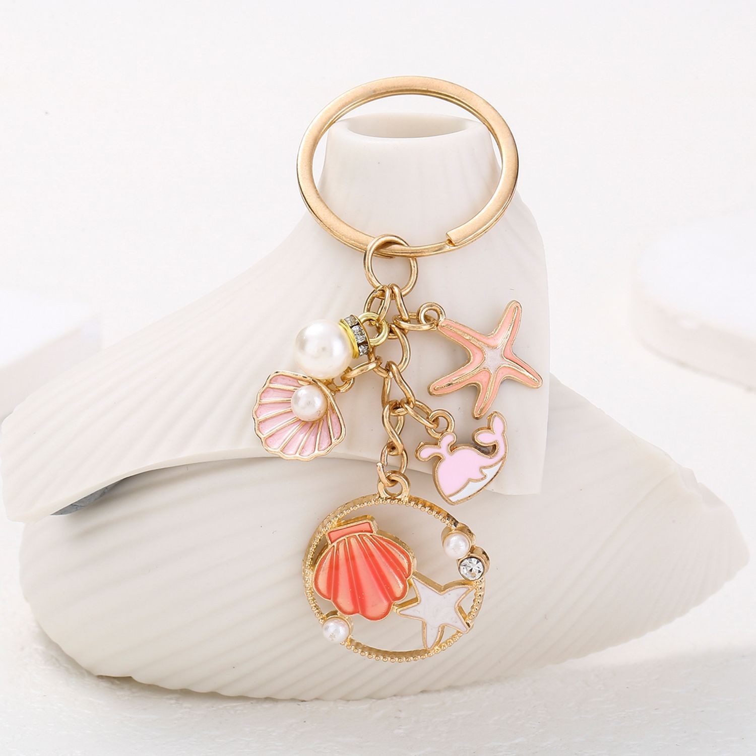 Enamel Zinc Alloy Key Chain, with Plastic Pearl, plated, ocean design & Unisex & different styles for choice, Sold By PC