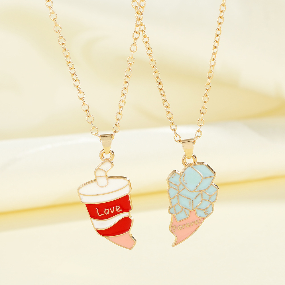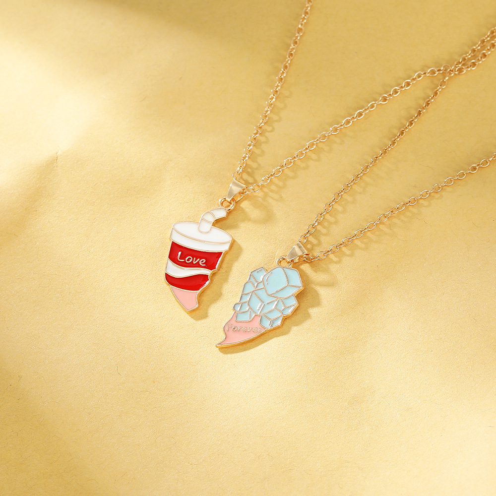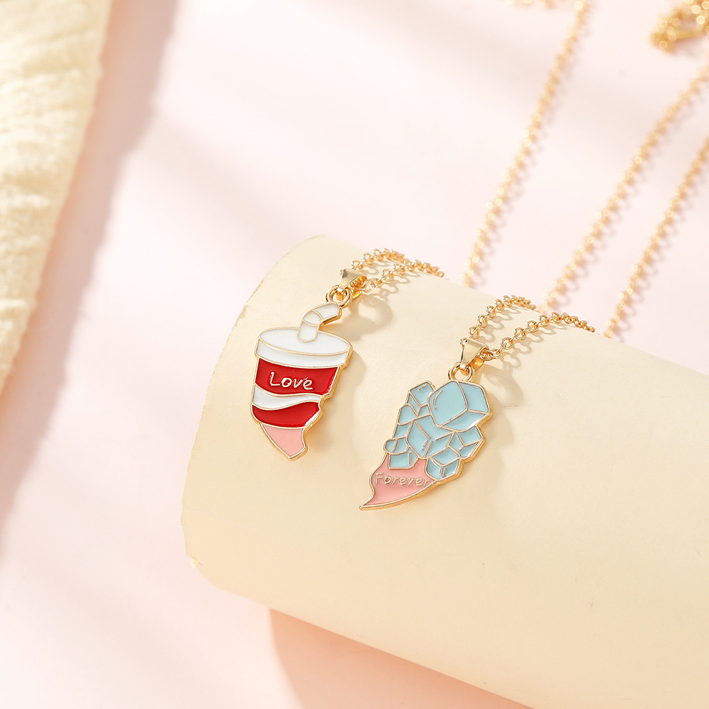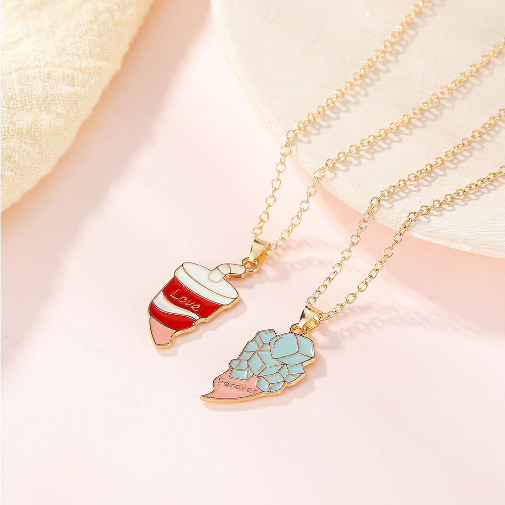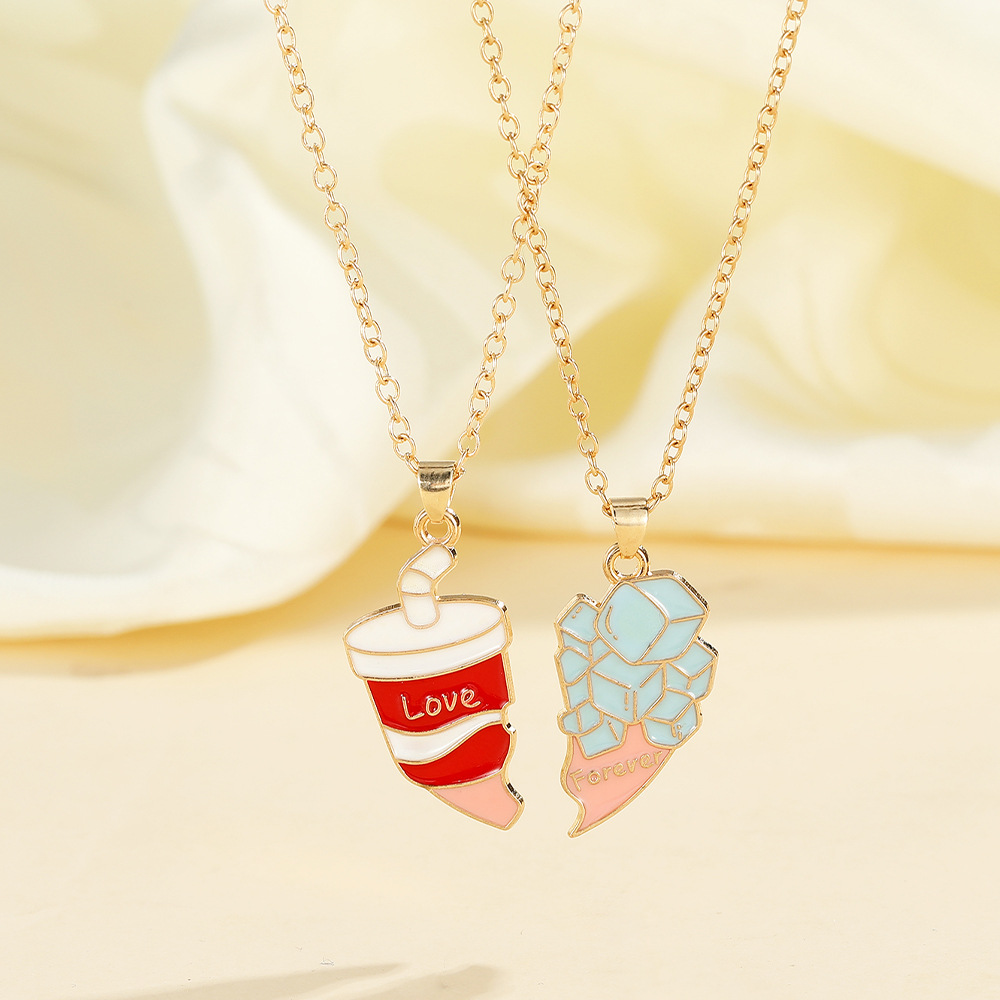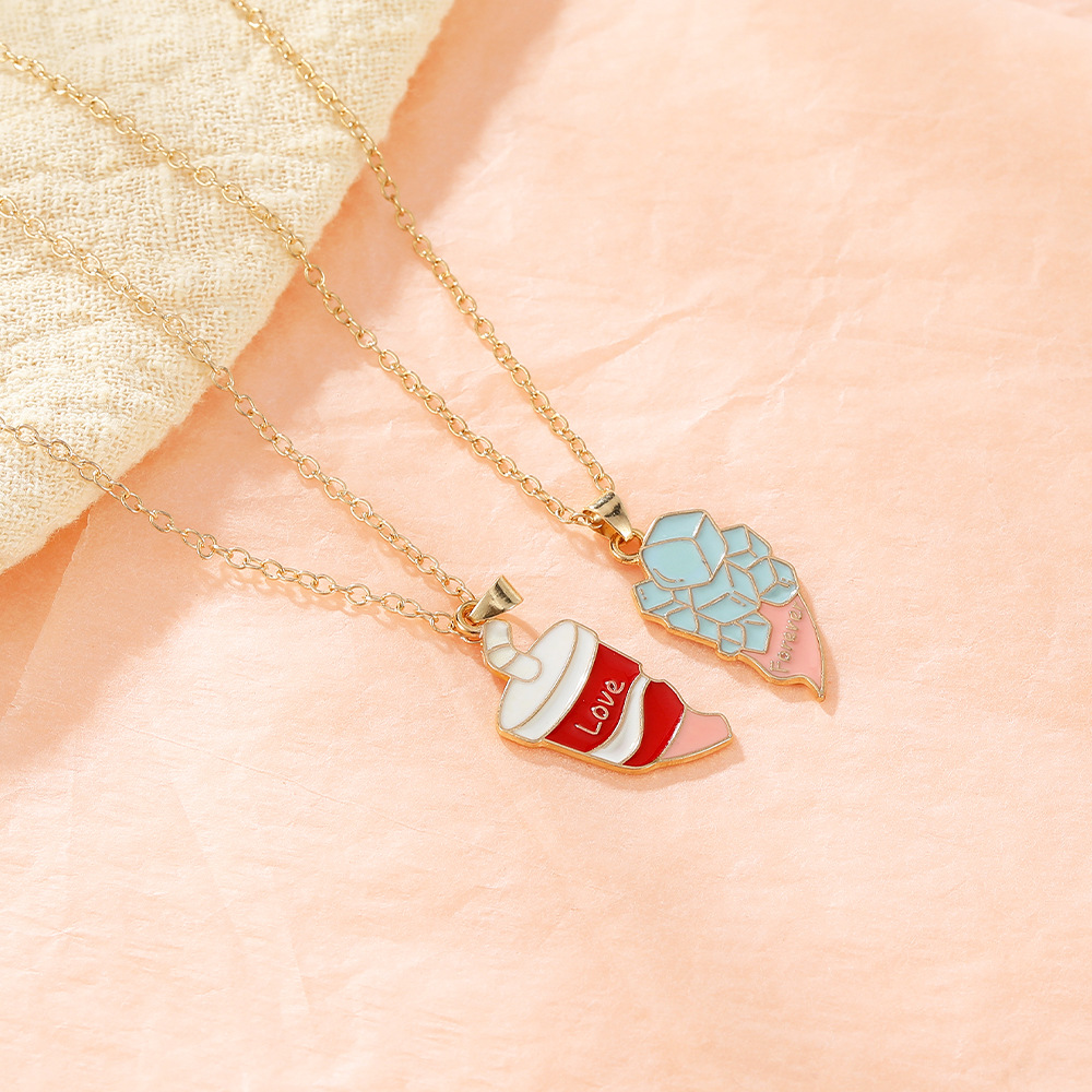 Enamel Zinc Alloy Necklace, plated, 2 pieces & Unisex, golden, Sold By Set