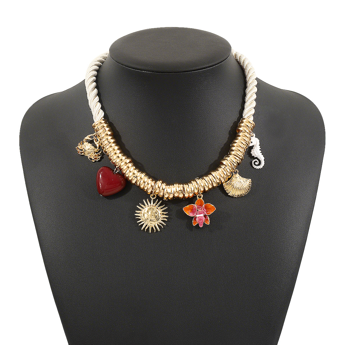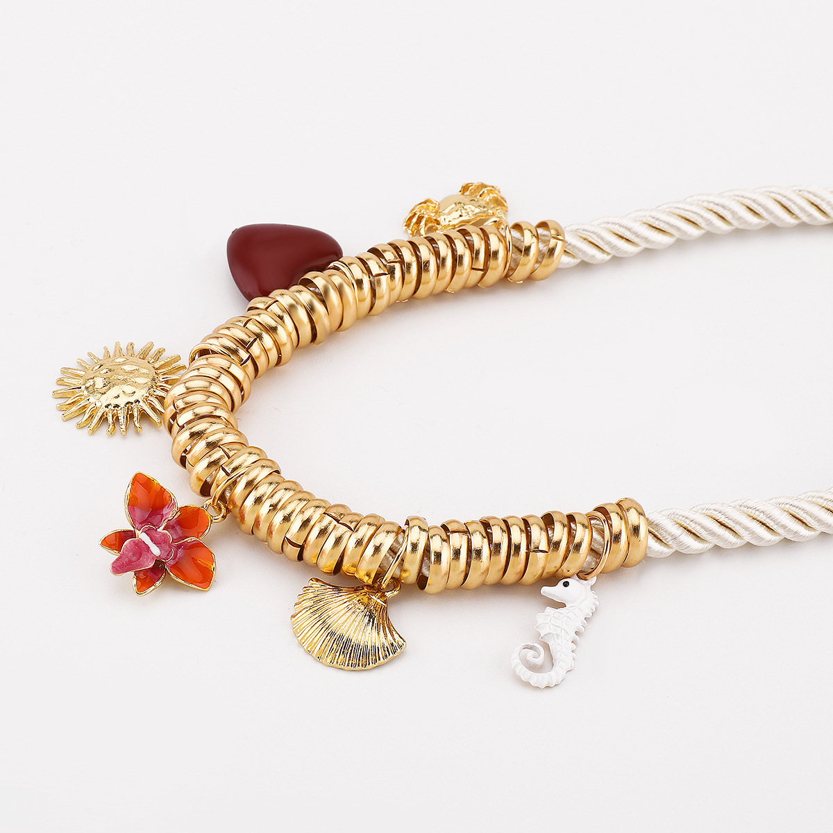 Enamel Zinc Alloy Necklace, with Polyester Cord & Resin, plated, fashion jewelry & for woman, golden, Sold By PC
