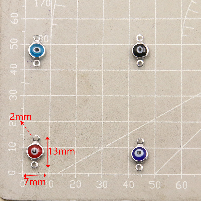 Evil Eye Jewelry Connector, 304 Stainless Steel, with Crystal, DIY & 1/1 loop, more colors for choice, 7x13mm, Hole:Approx 2mm, Approx 100PCs/Bag, Sold By Bag
