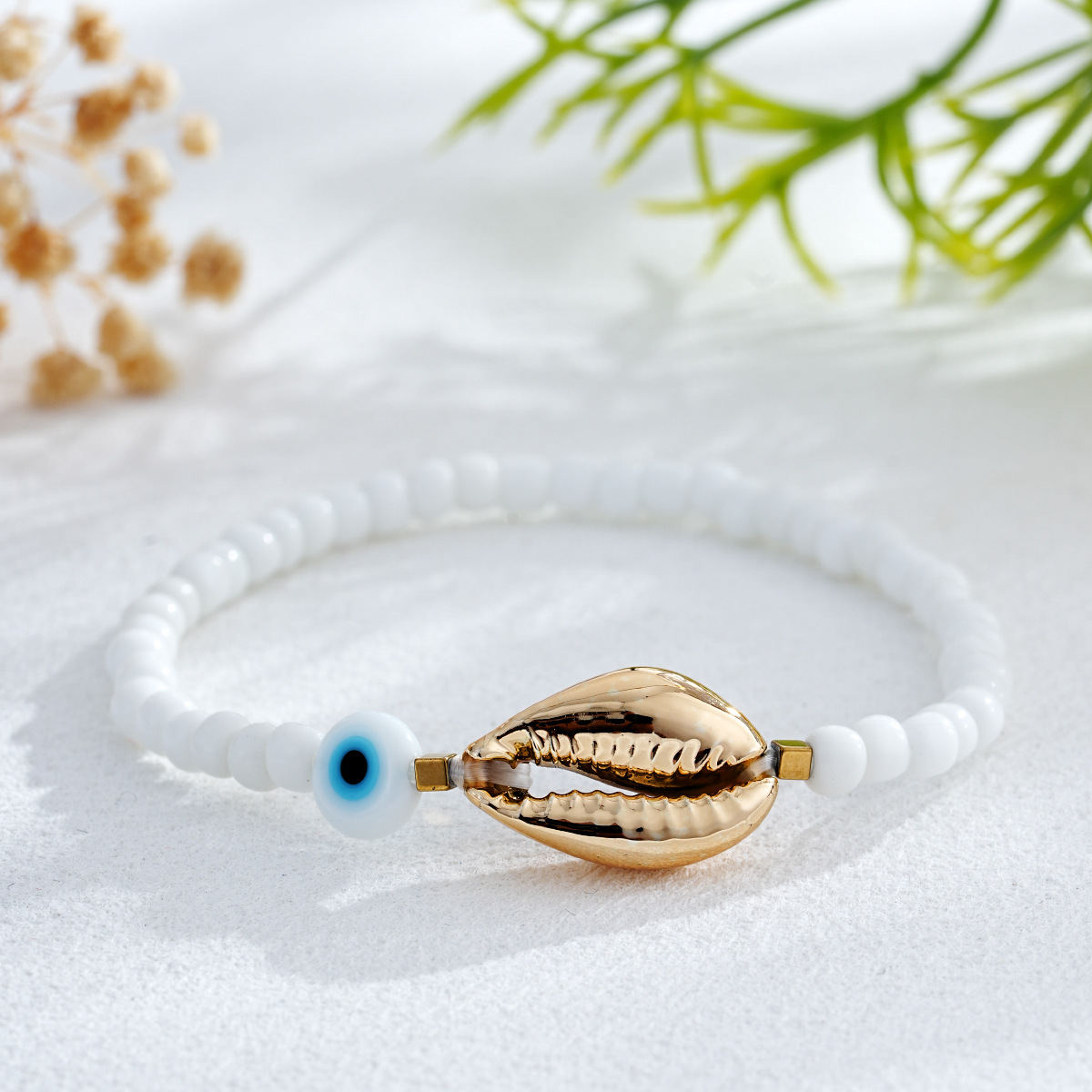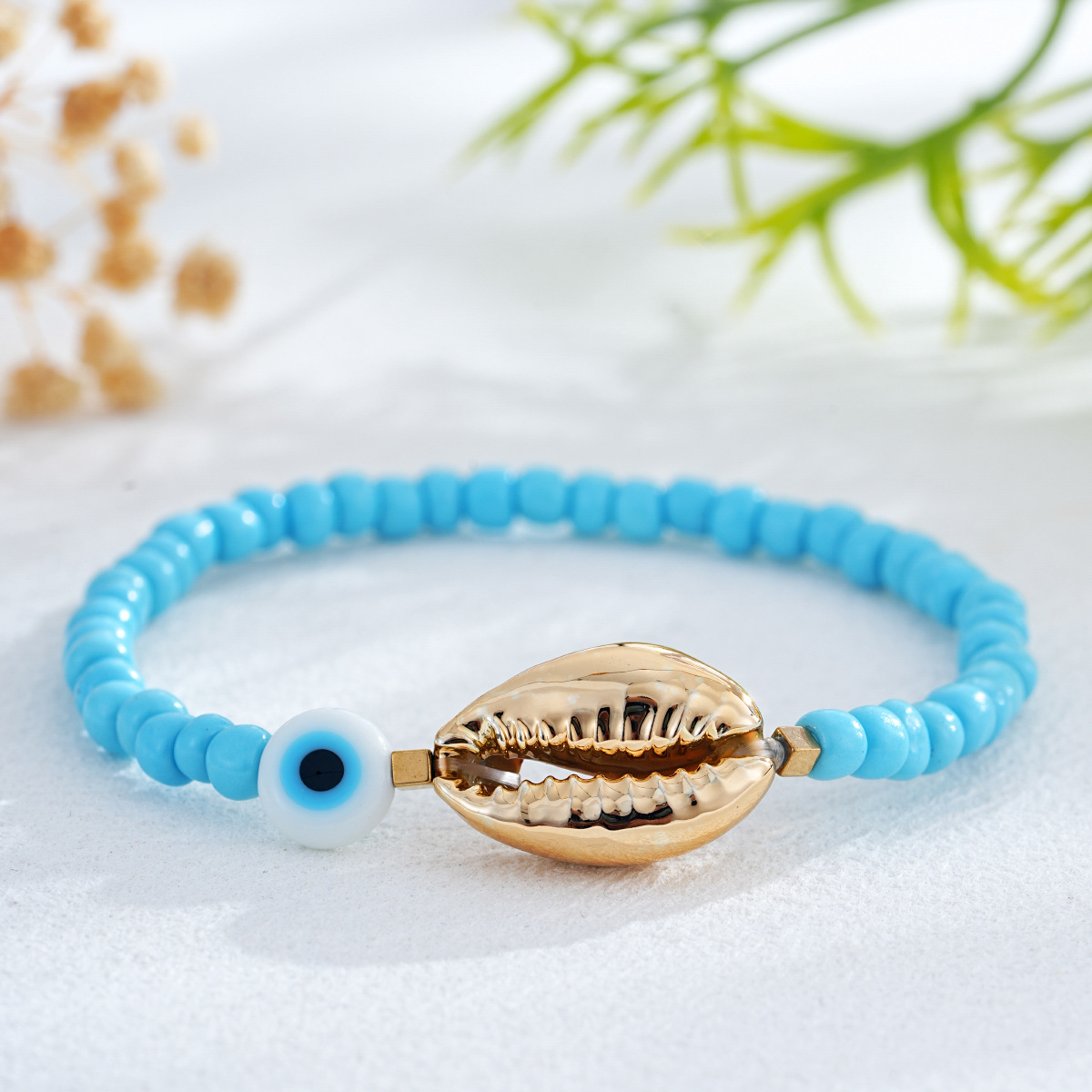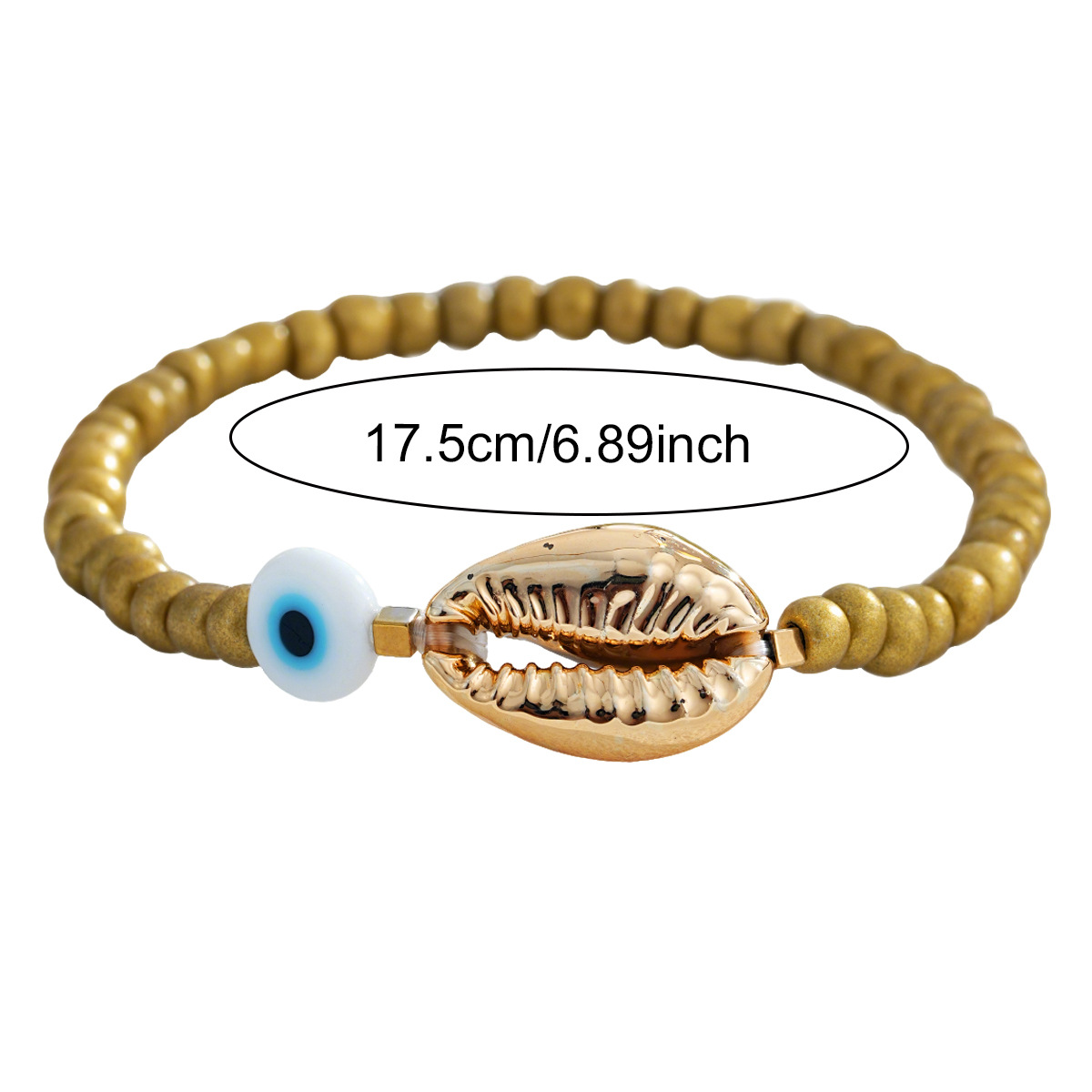 Evil Eye Lampwork Bracelets, 304 Stainless Steel, with Shell & Lampwork, gold color plated, fashion jewelry, more colors for choice, Sold By PC