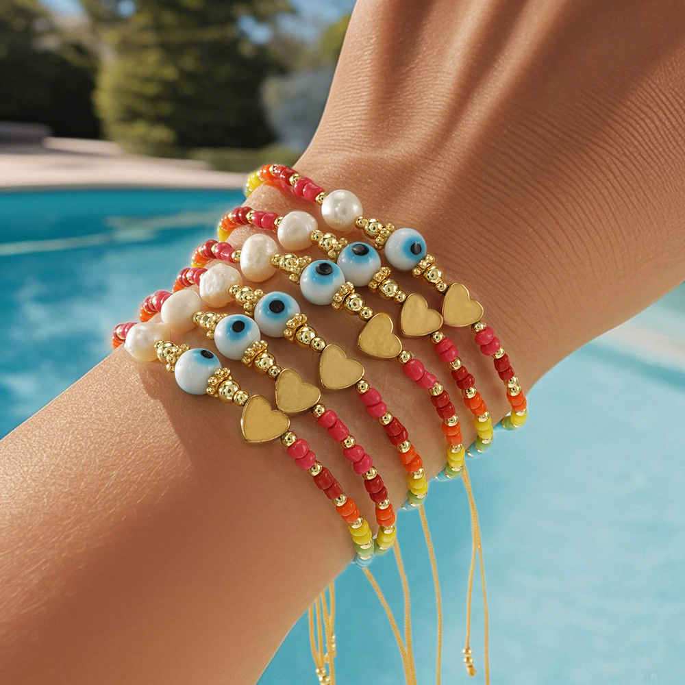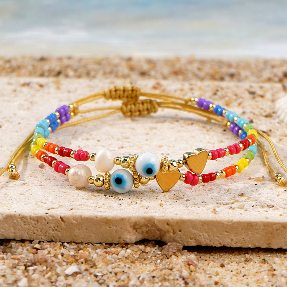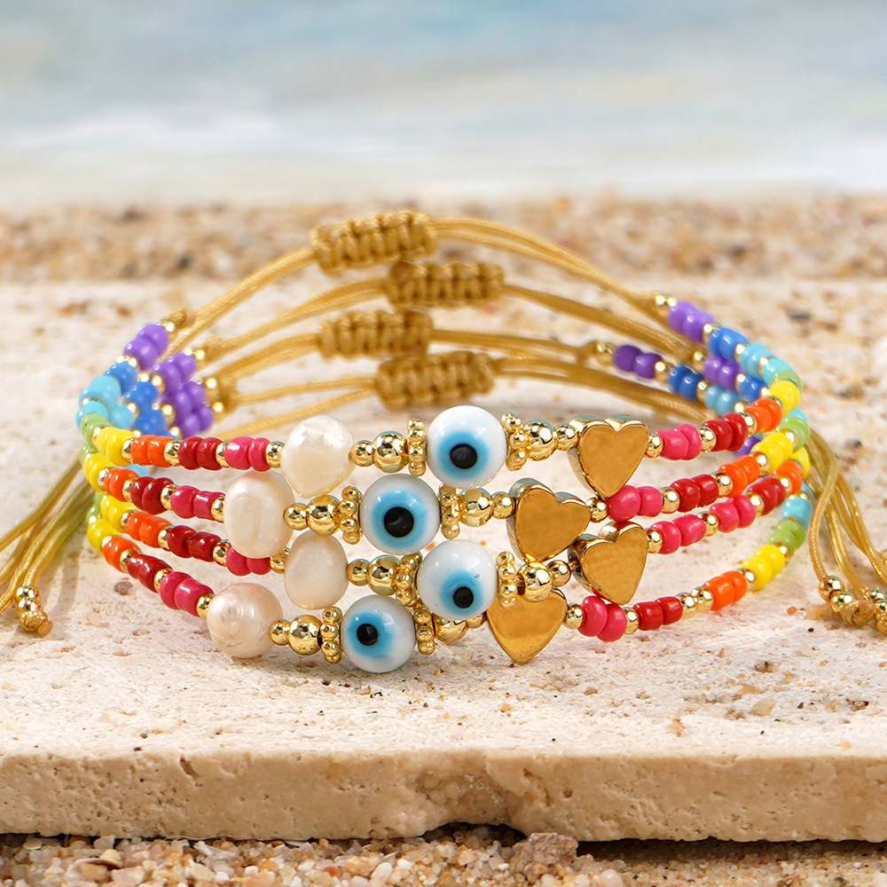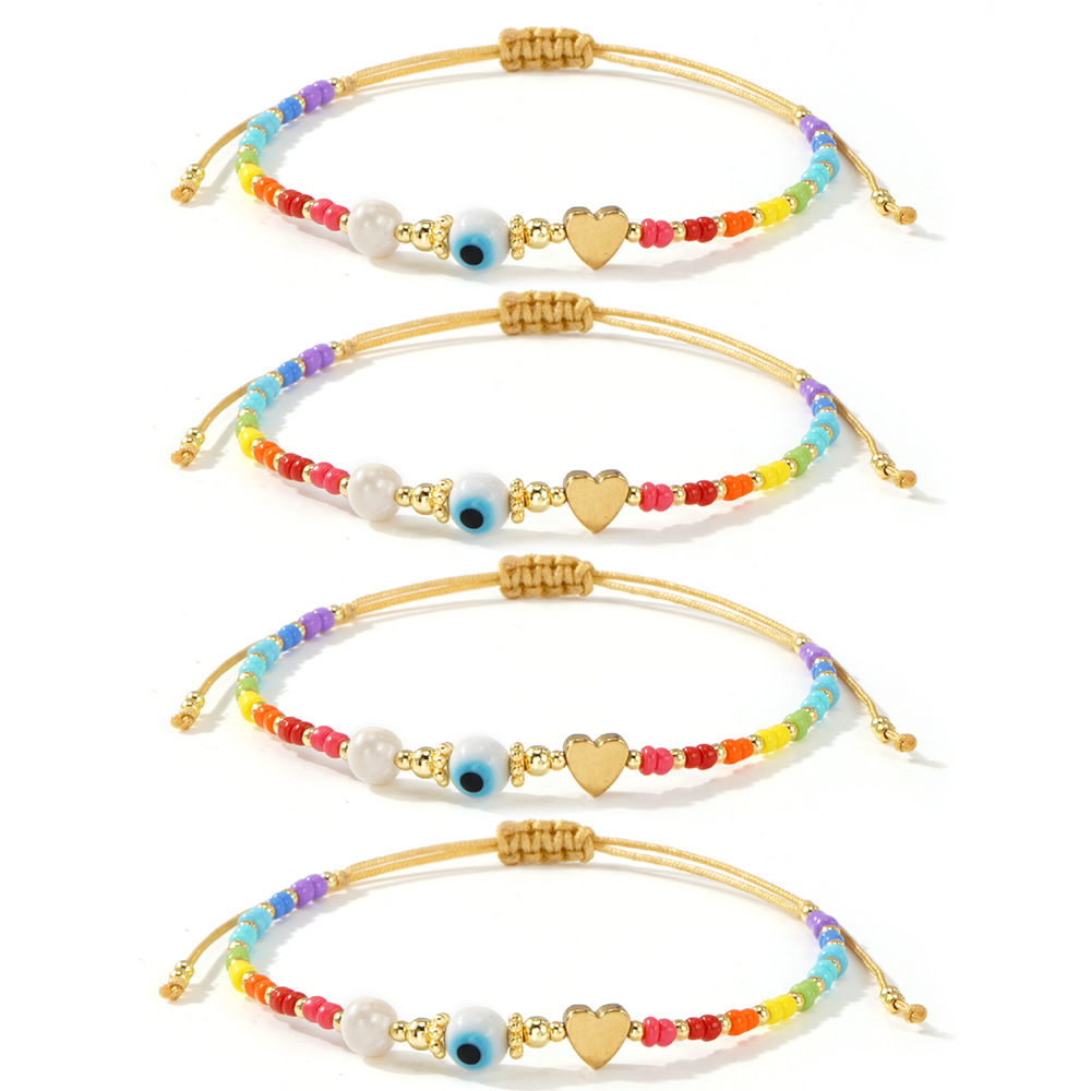 Evil Eye Lampwork Bracelets, with Seedbead & Plastic Pearl & Zinc Alloy, gold color plated, fashion jewelry, more colors for choice, Sold By PC