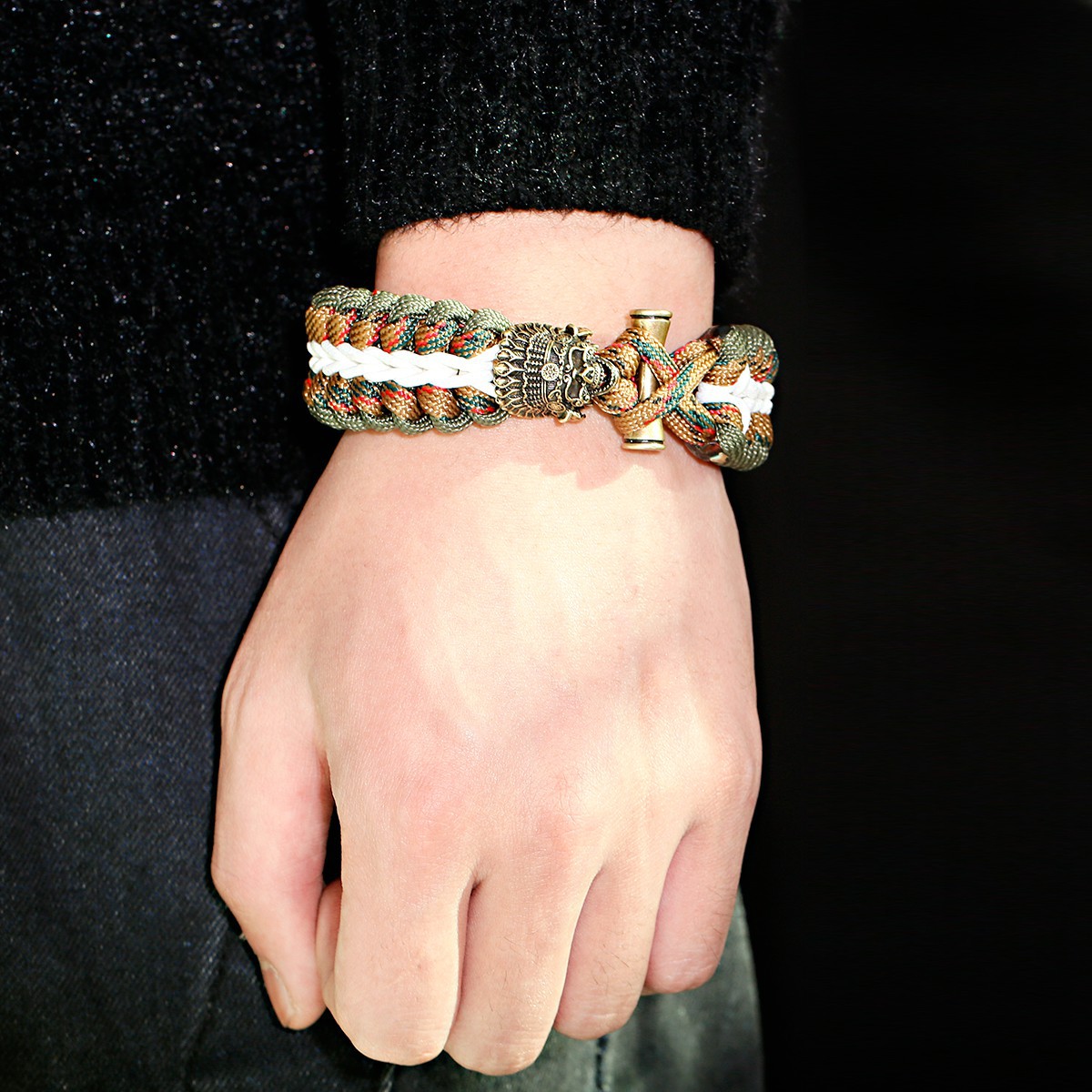 Fashion Jewelry Bracelet, Parachute Cord, with Brass, Skull, plated, different length for choice & for man, more colors for choice, Sold By PC