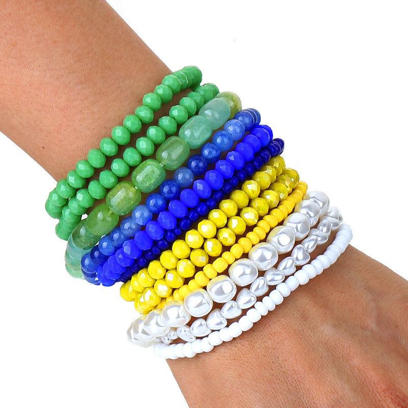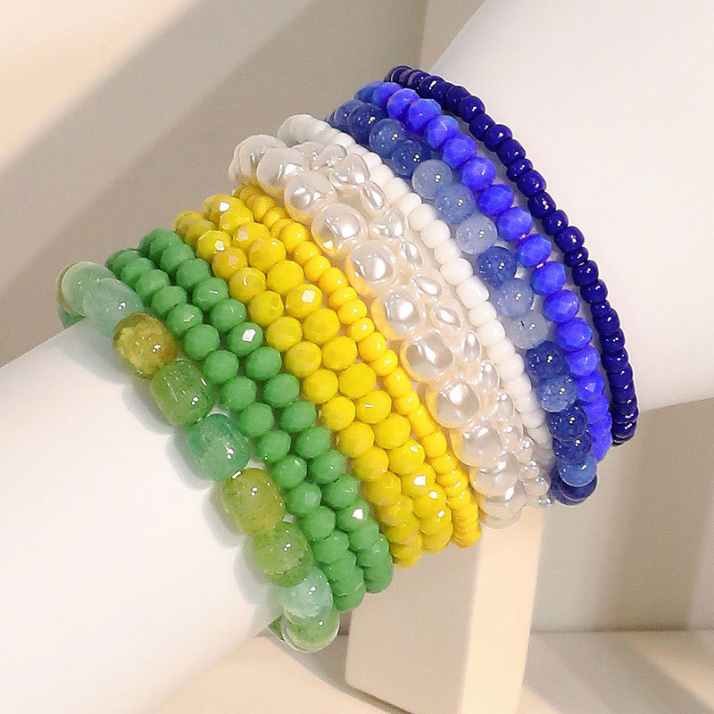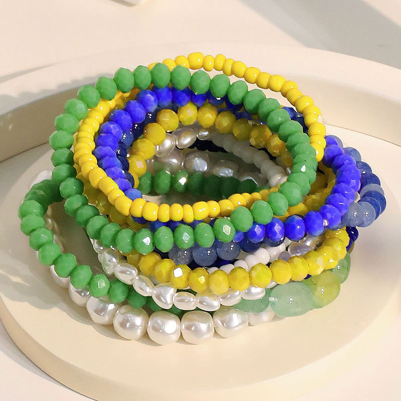 Fashion Jewelry Bracelet, Plastic Pearl, with Glass, more colors for choice, 12PCs/Set, Sold By Set