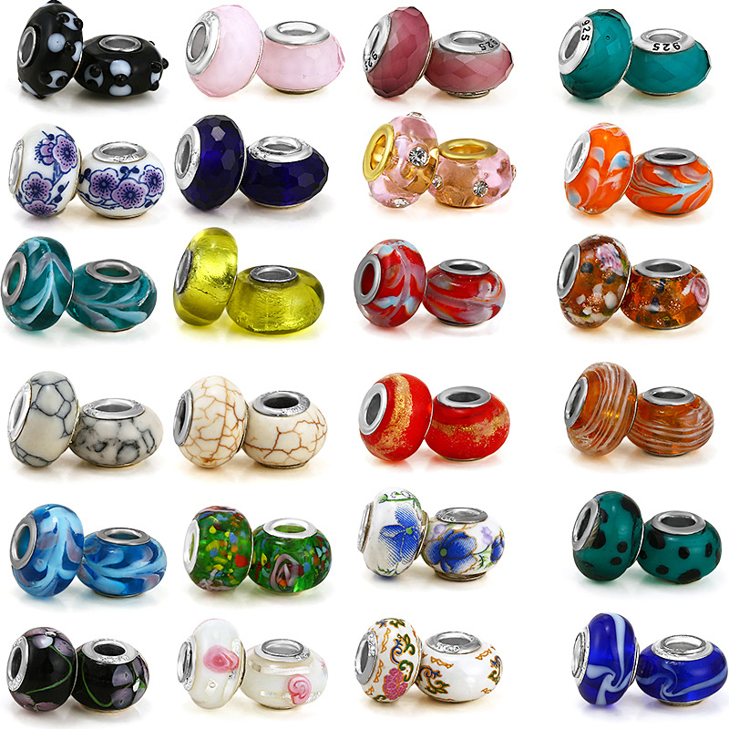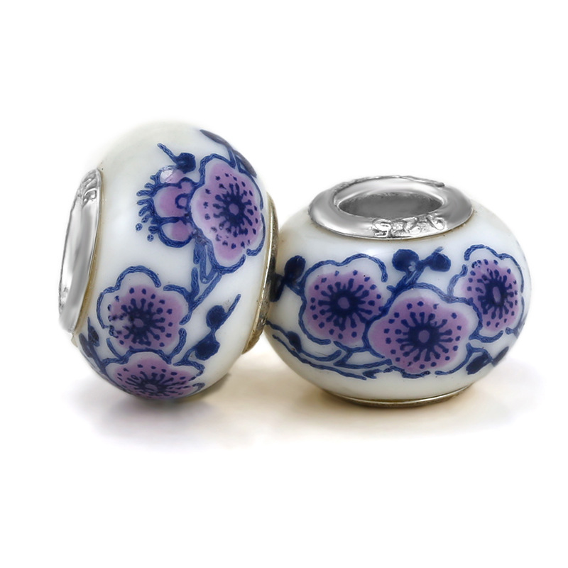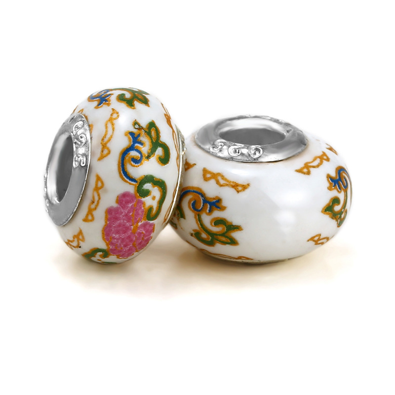 Fashion Lampwork European Bead, with Porcelain & Brass, silver color plated, DIY, more colors for choice, 10x14mm, Sold By PC