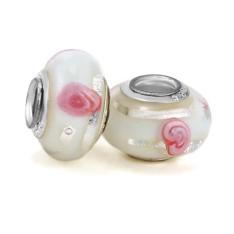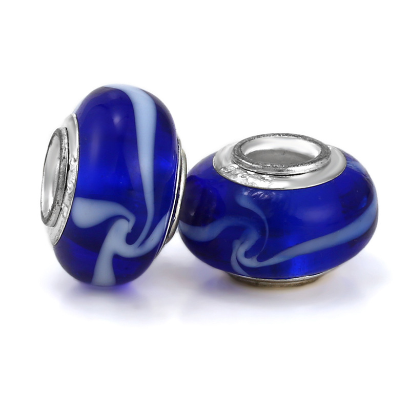Fashion Lampwork European Bead, Rondelle, sterling silver single core with troll & blacken Approx 4mm