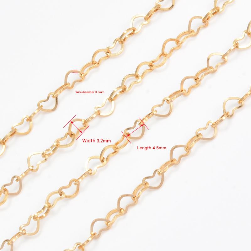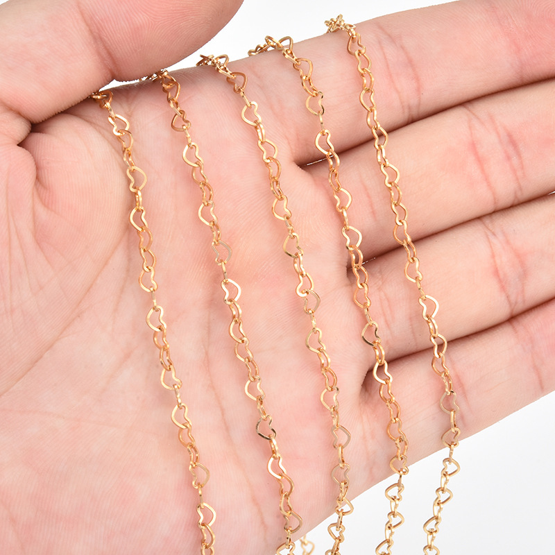 Fashion Stainless Steel Necklace Chain, 304 Stainless Steel, Heart, Vacuum Ion Plating, DIY, more colors for choice, 4.5x3.2x0.5mm, Sold By m