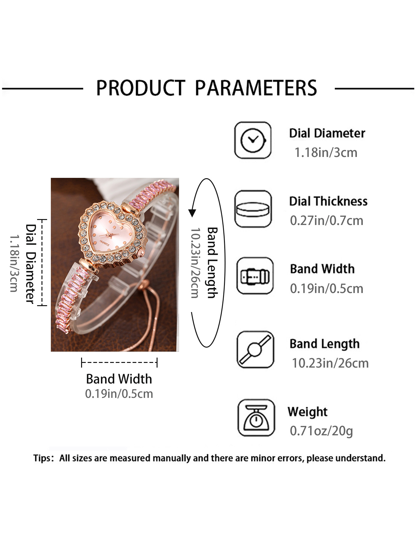 Fashion Watch Bracelet, Brass, with Zinc Alloy, Heart, nickel plated, lead & cadmium free Approx 8.5 Inch