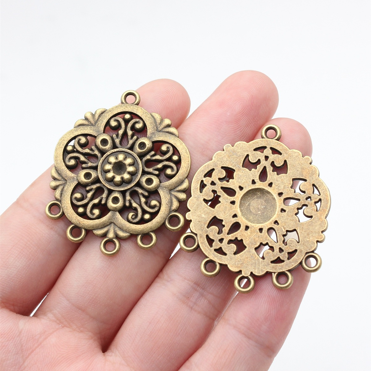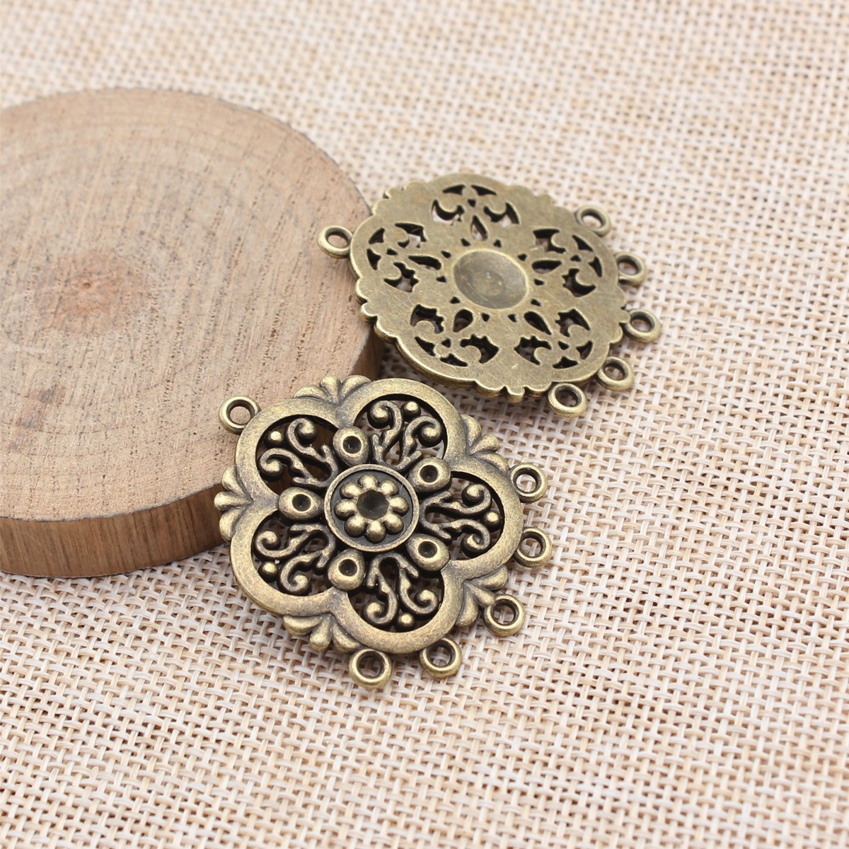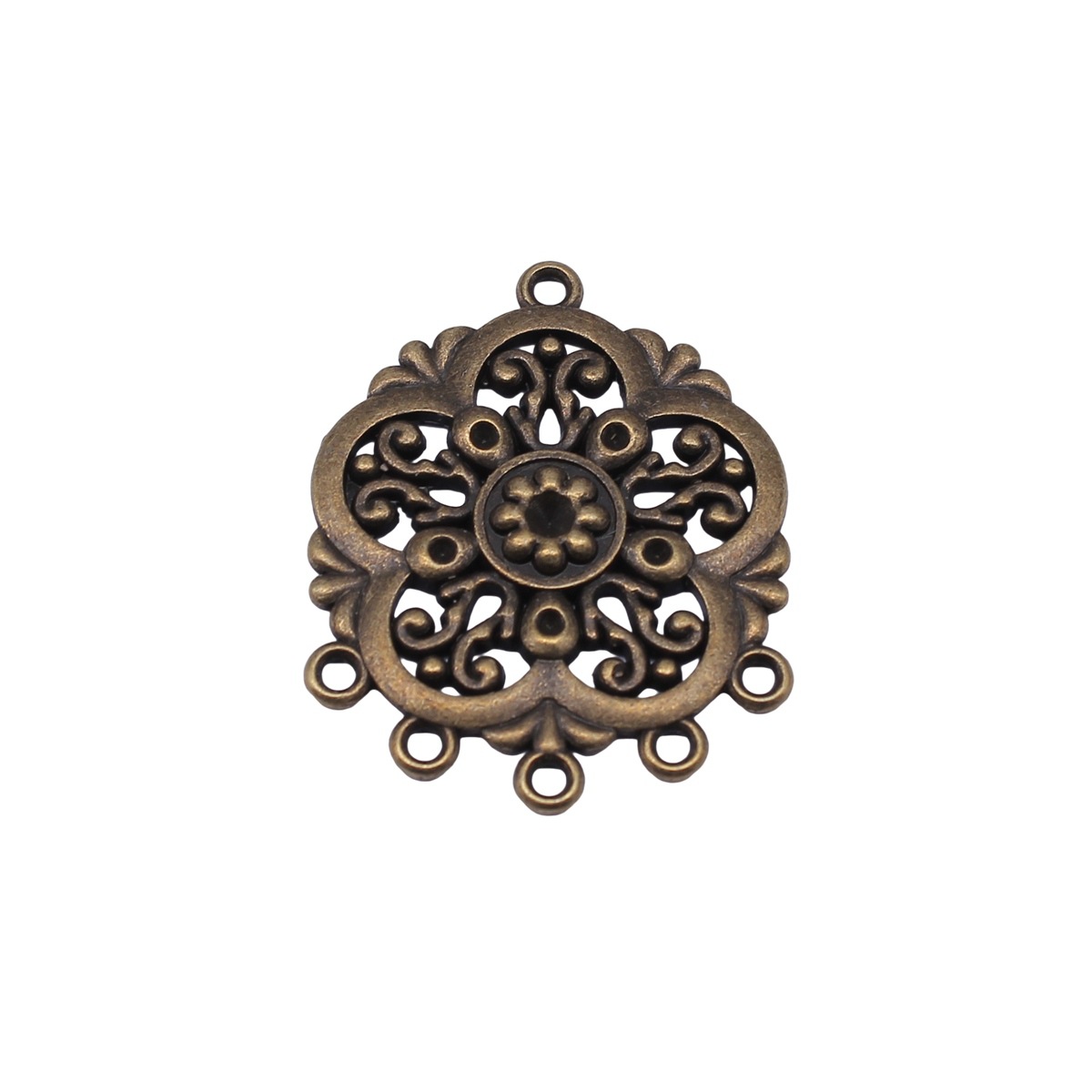 Filigree Zinc Alloy Connector, Flat Round, plated