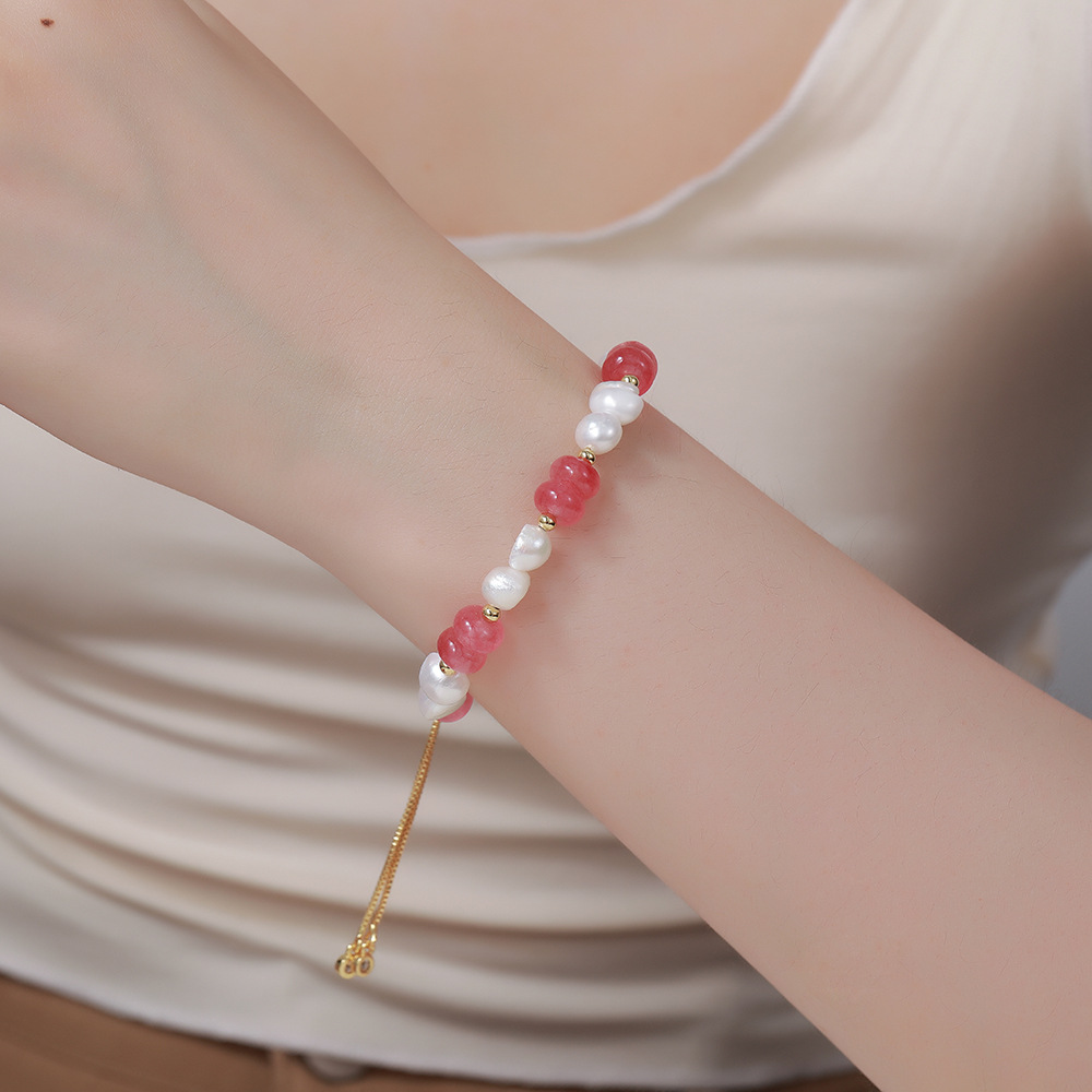 Freshwater Pearl Bracelet, with Gemstone & Brass, different materials for choice & box chain & for woman, Length:Approx 6.29-10.23 Inch, Sold By PC
