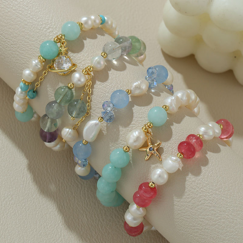 3 natural pearl starfish lake blue agate