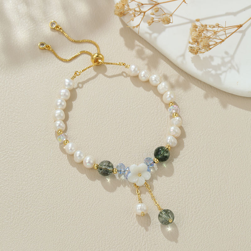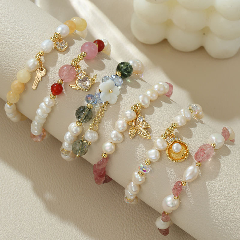 Freshwater Pearl Bracelet, with Gemstone & Brass, different styles for choice & for woman & with rhinestone, Length:Approx 6.29-10.23 Inch, Sold By PC
