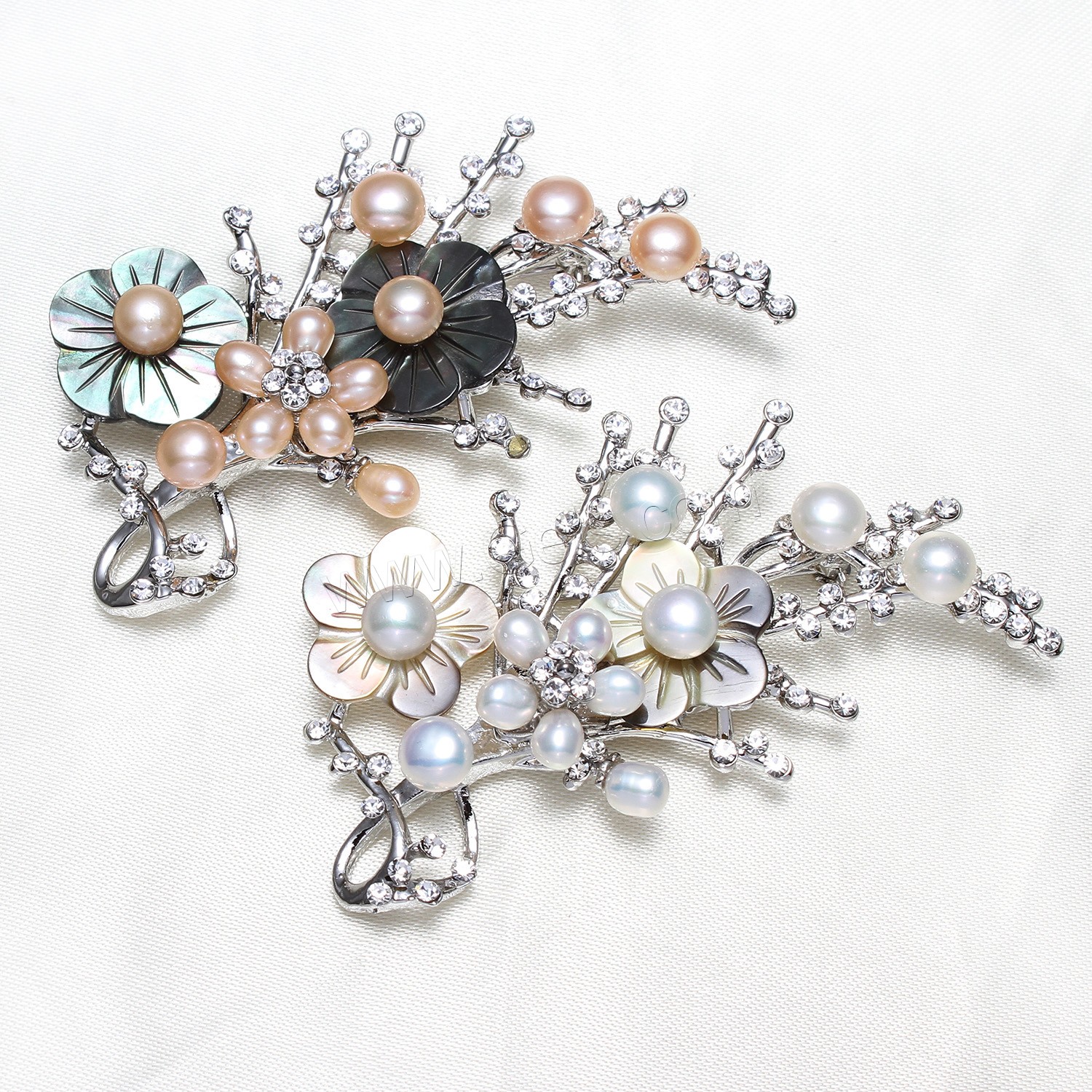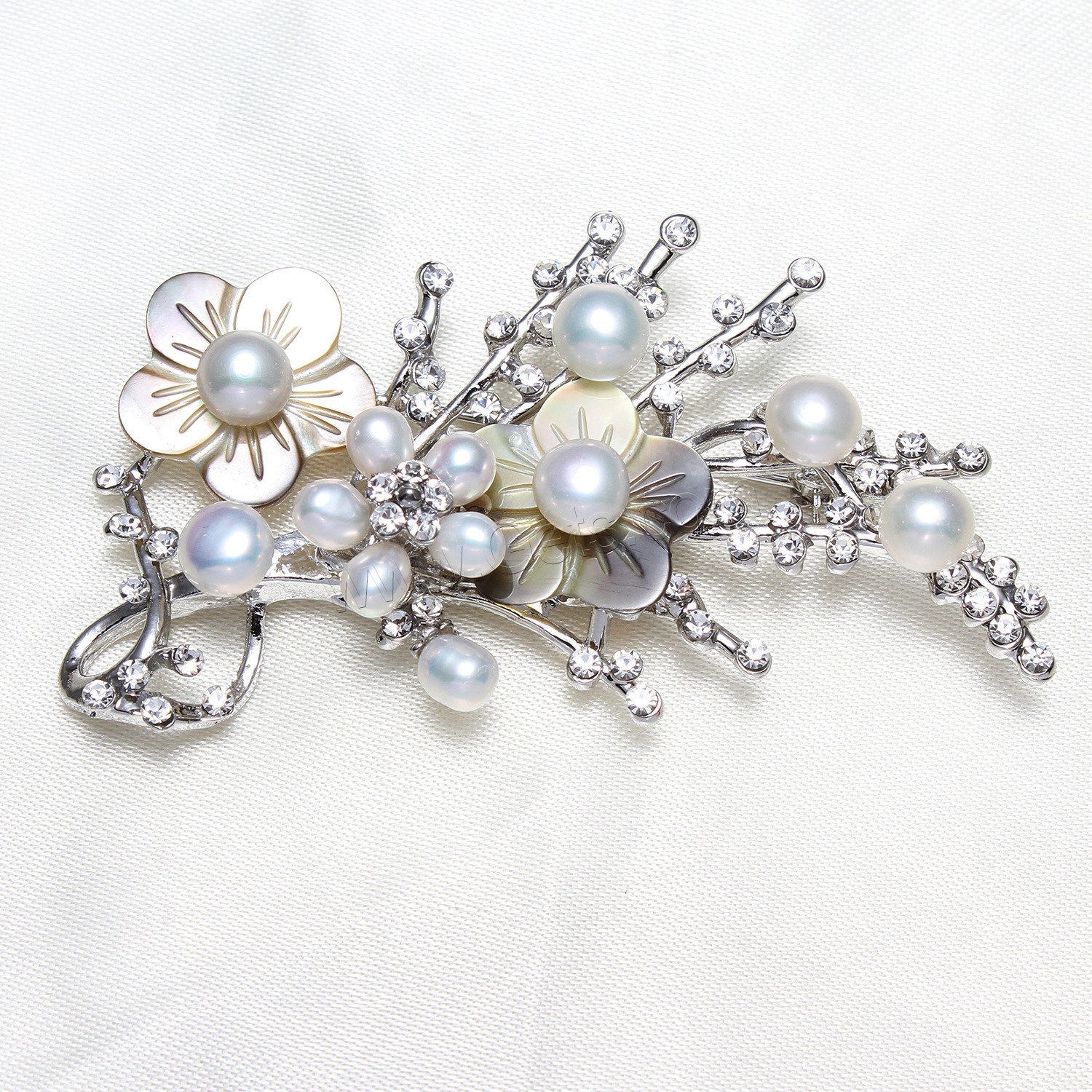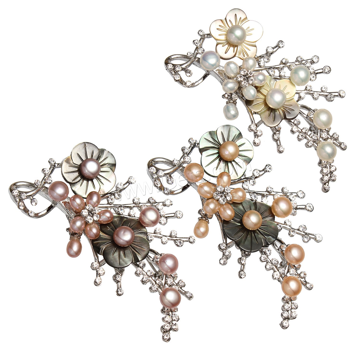Freshwater Pearl Brooch, Zinc Alloy, with Freshwater Pearl & Resin, gold color plated, fashion jewelry & with rhinestone