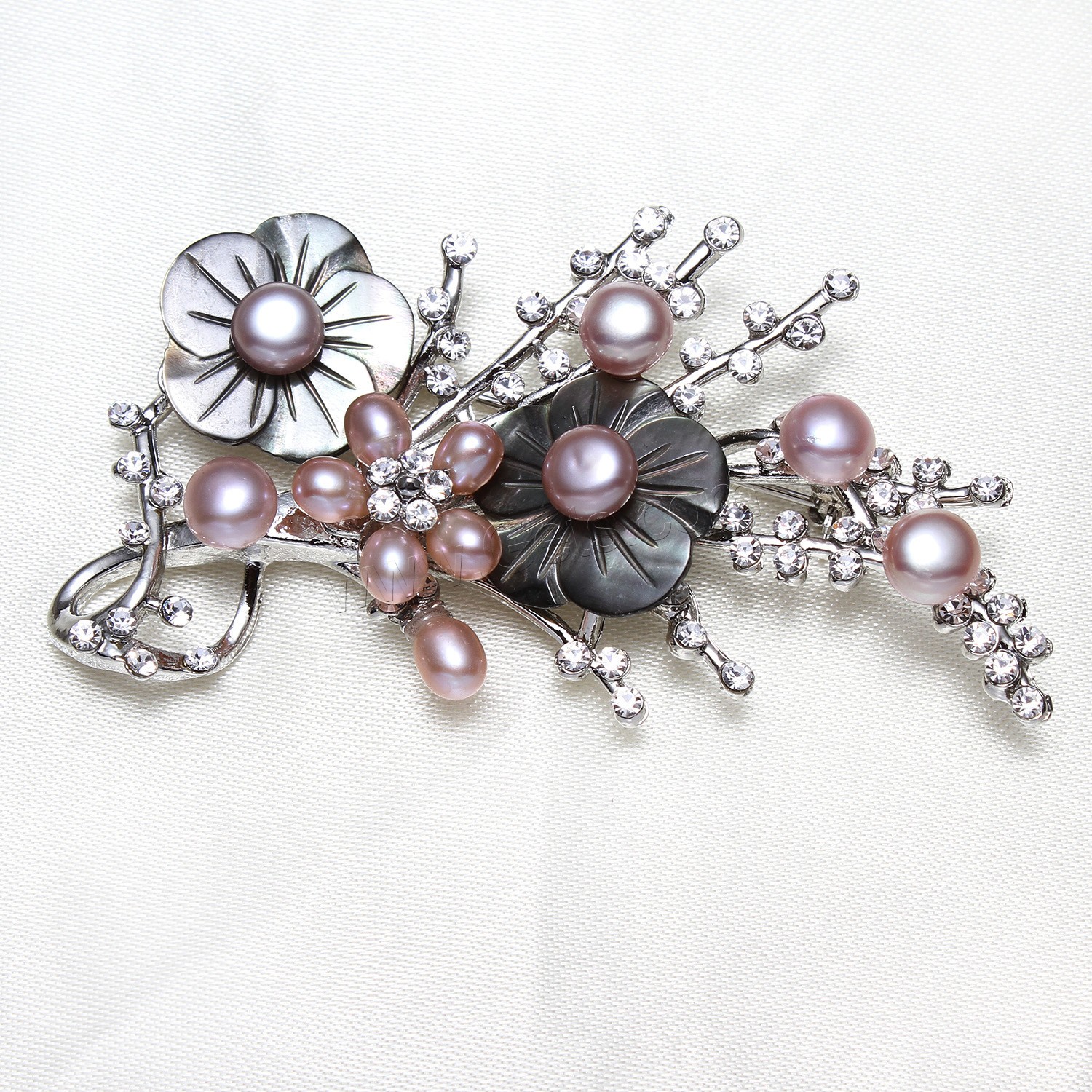 Freshwater Pearl Brooch, Brass, with Black Shell & Freshwater Pearl, Flower, platinum plated, for woman & with cubic zirconia, more colors for choice, nickel, lead & cadmium free, 69x37.5x15mm, Sold By PC