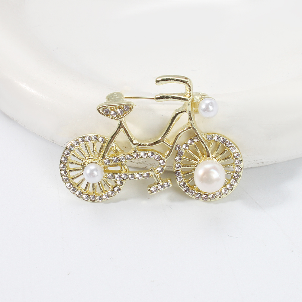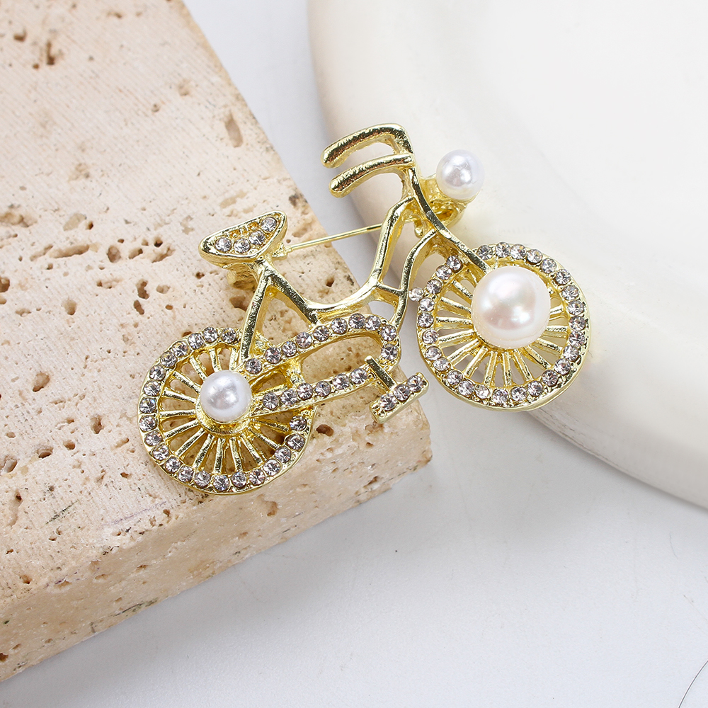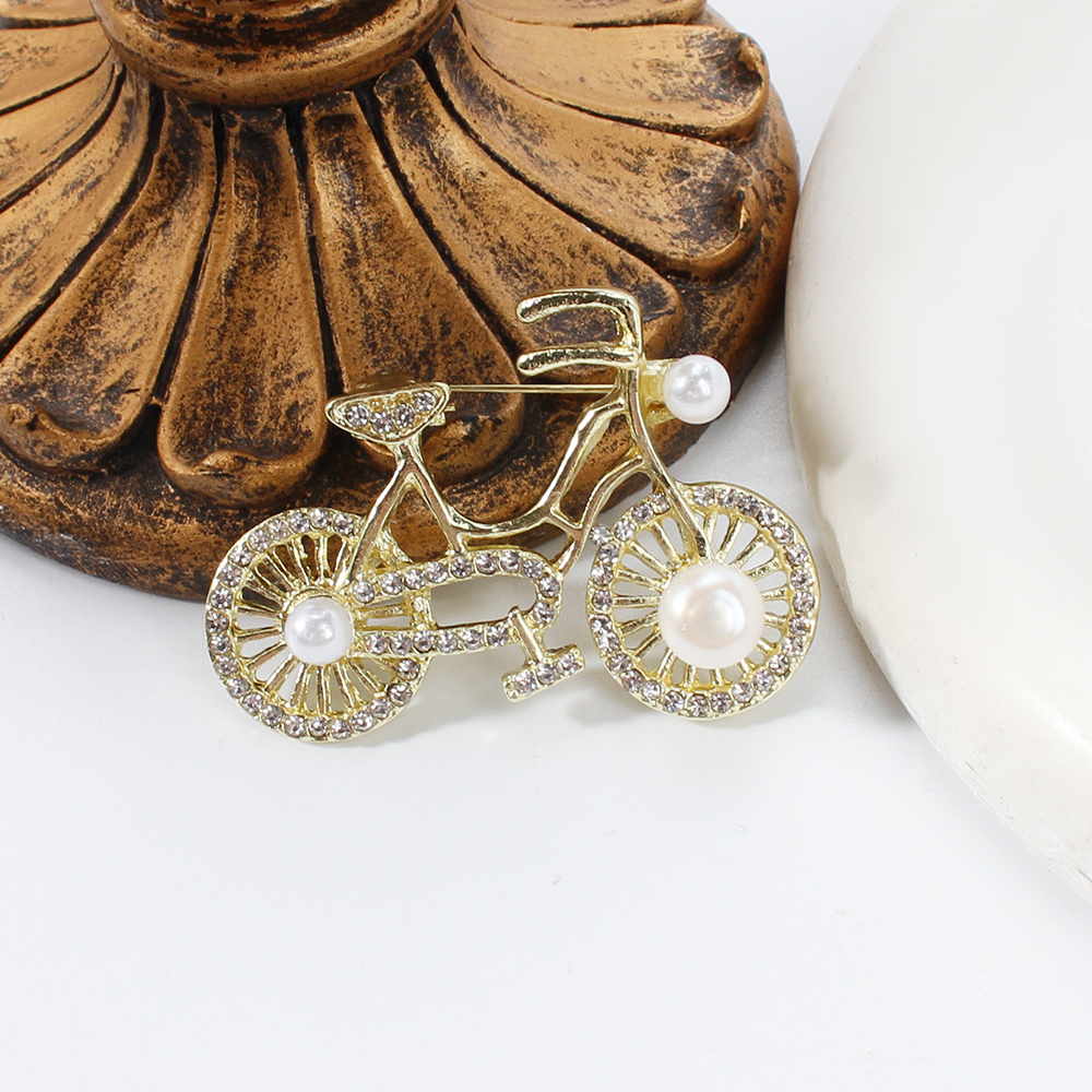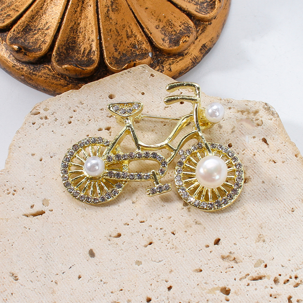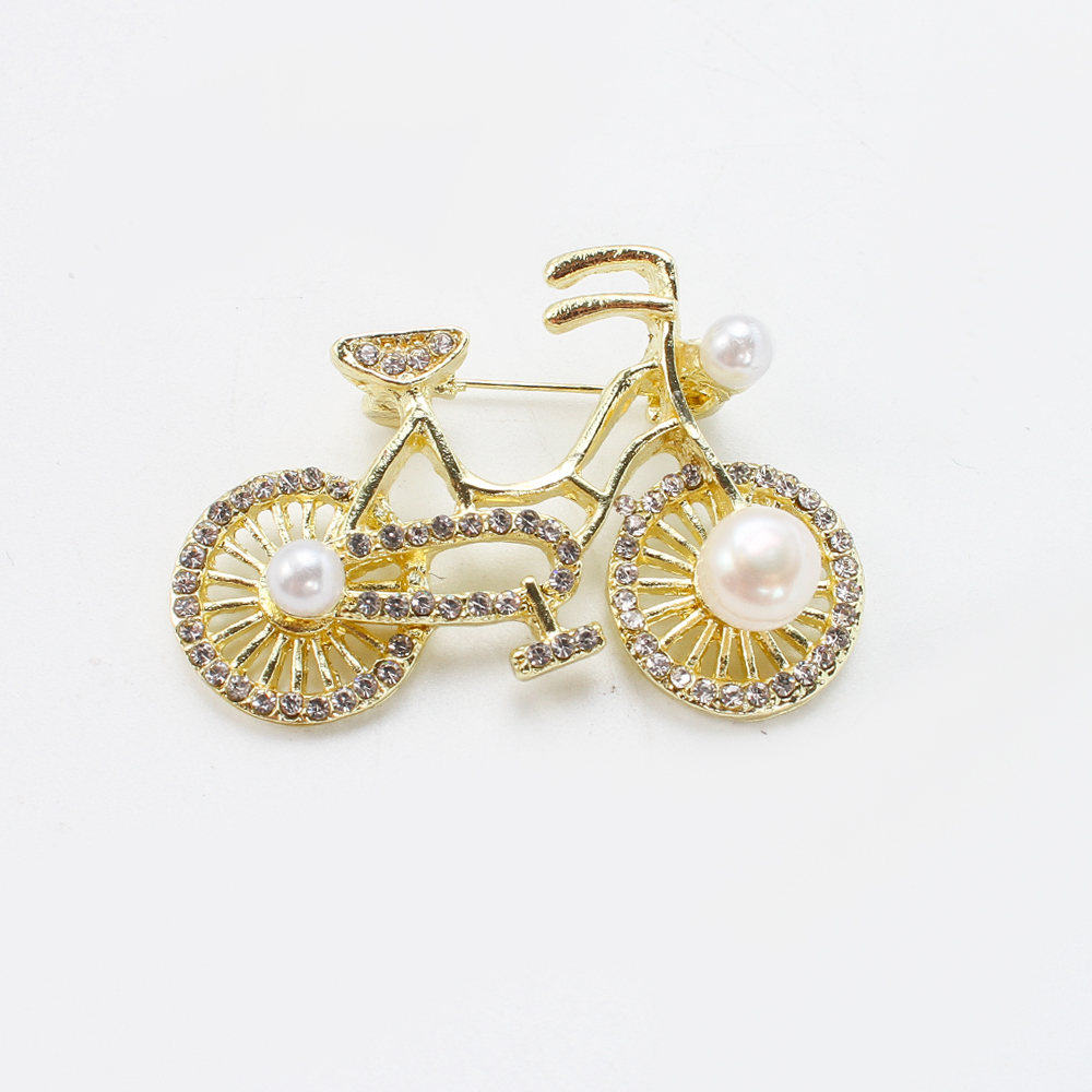 Freshwater Pearl Brooch, Zinc Alloy, with Freshwater Pearl, Bike, gold color plated, fashion jewelry & with rhinestone, more colors for choice, 45.14x15.81x32.45mm, Sold By PC