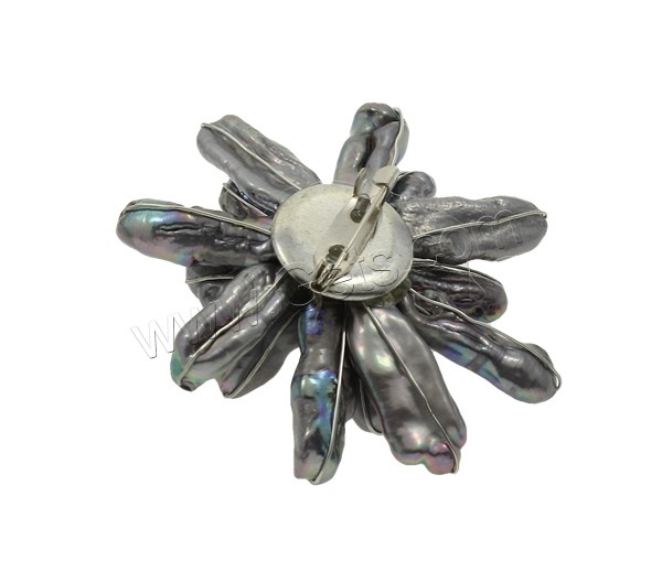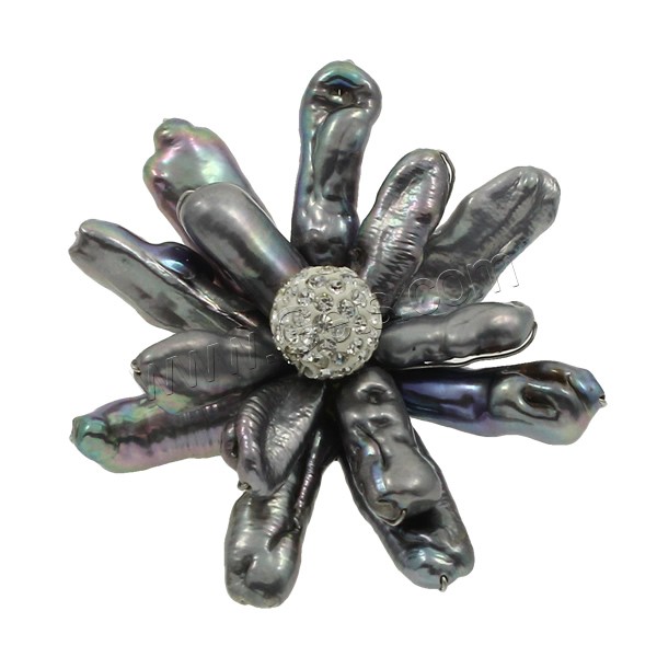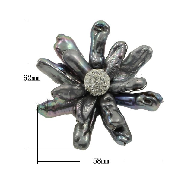 Freshwater Pearl Brooch, with Rhinestone Clay Pave Bead & Brass, Flower, black, 58x62x26mm, Sold By PC