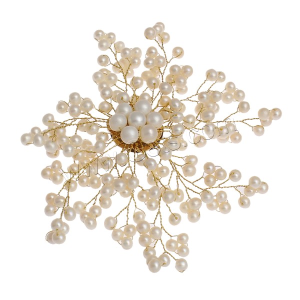 Freshwater Pearl Brooch, Zinc Alloy, with Freshwater Pearl, gold color plated, fashion jewelry