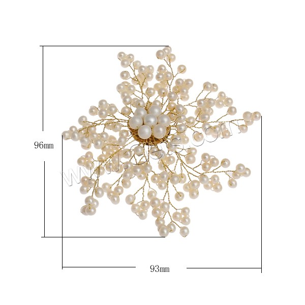 Freshwater Pearl Brooch, with Brass, Flower, natural, white, 93x96x17mm, Sold By PC