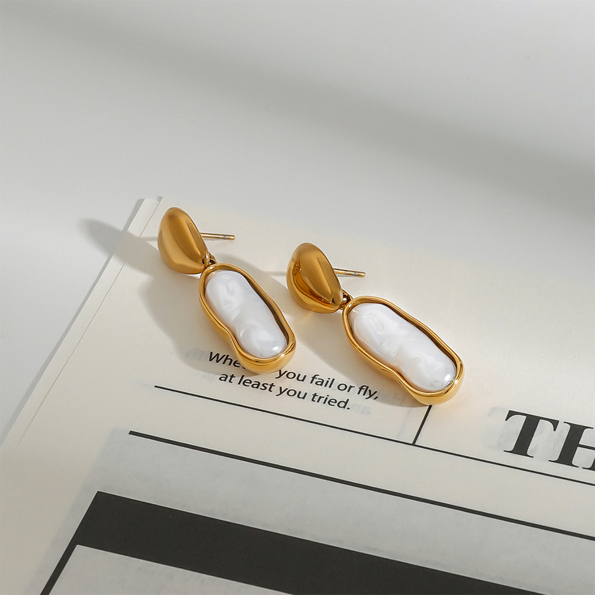 Freshwater Pearl Drop Earring, 304 Stainless Steel, with Freshwater Pearl, plated, fashion jewelry & for woman, golden, Sold By Pair
