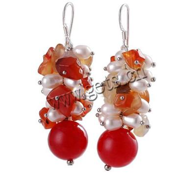 Freshwater Pearl Cluster Earring, with coral & Agate, sterling silver earring hook, multi-colored, 4-5mm,4-6mm,12mm, Sold By Pair
