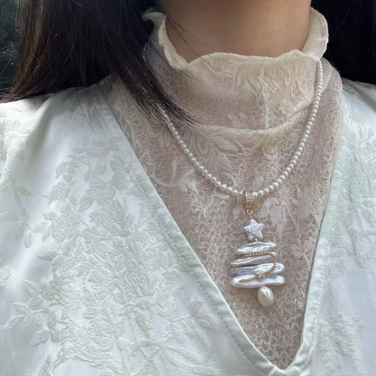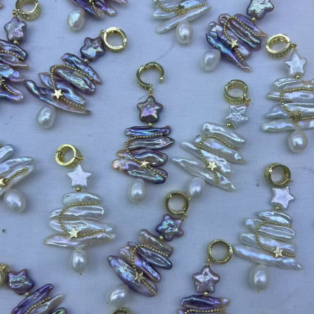 Freshwater Pearl Pendants, with Zinc Alloy, Christmas Tree, DIY & with rhinestone, more colors for choice, Sold By PC