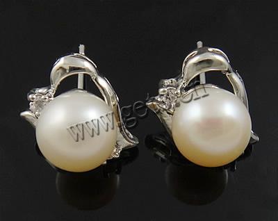 Freshwater Pearl Stud Earring, brass post pin, Dome, with rhinestone 11--12mm