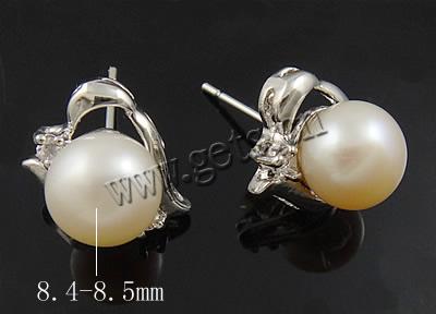 Freshwater Pearl Stud Earring, Brass, with Freshwater Pearl, platinum plated, nickel, lead & cadmium free, 7-8mm
