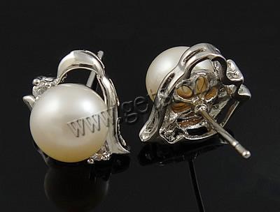 Freshwater Pearl Stud Earring, brass post pin, silver color plated, mixed, mixed colors, 10-11mm