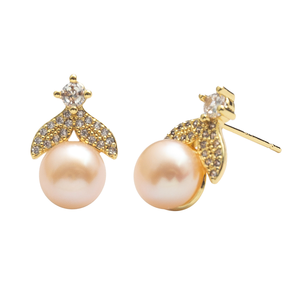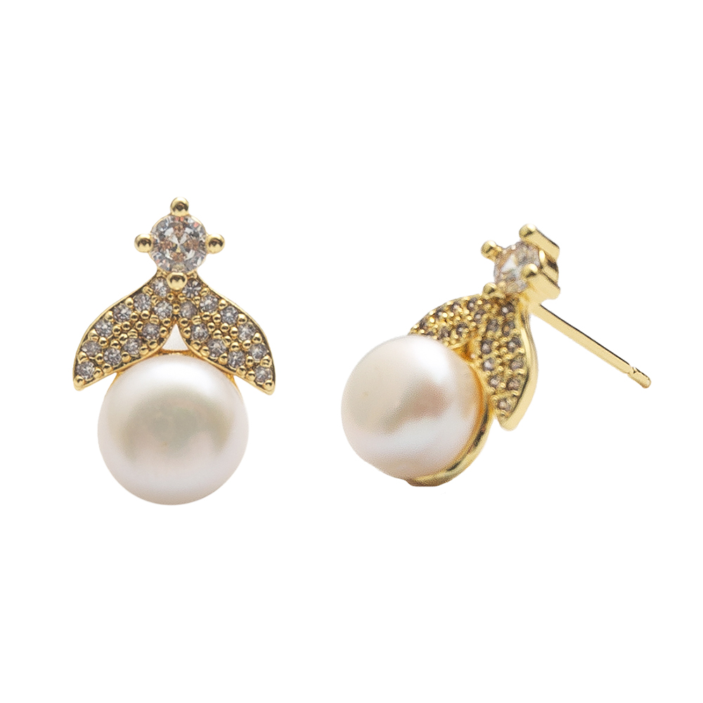 Freshwater Pearl Stud Earring, brass post pin, Dome 10mm