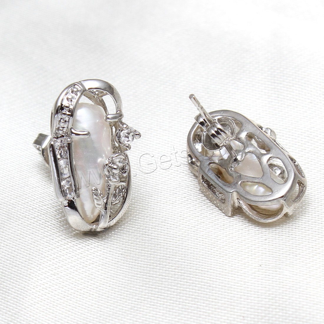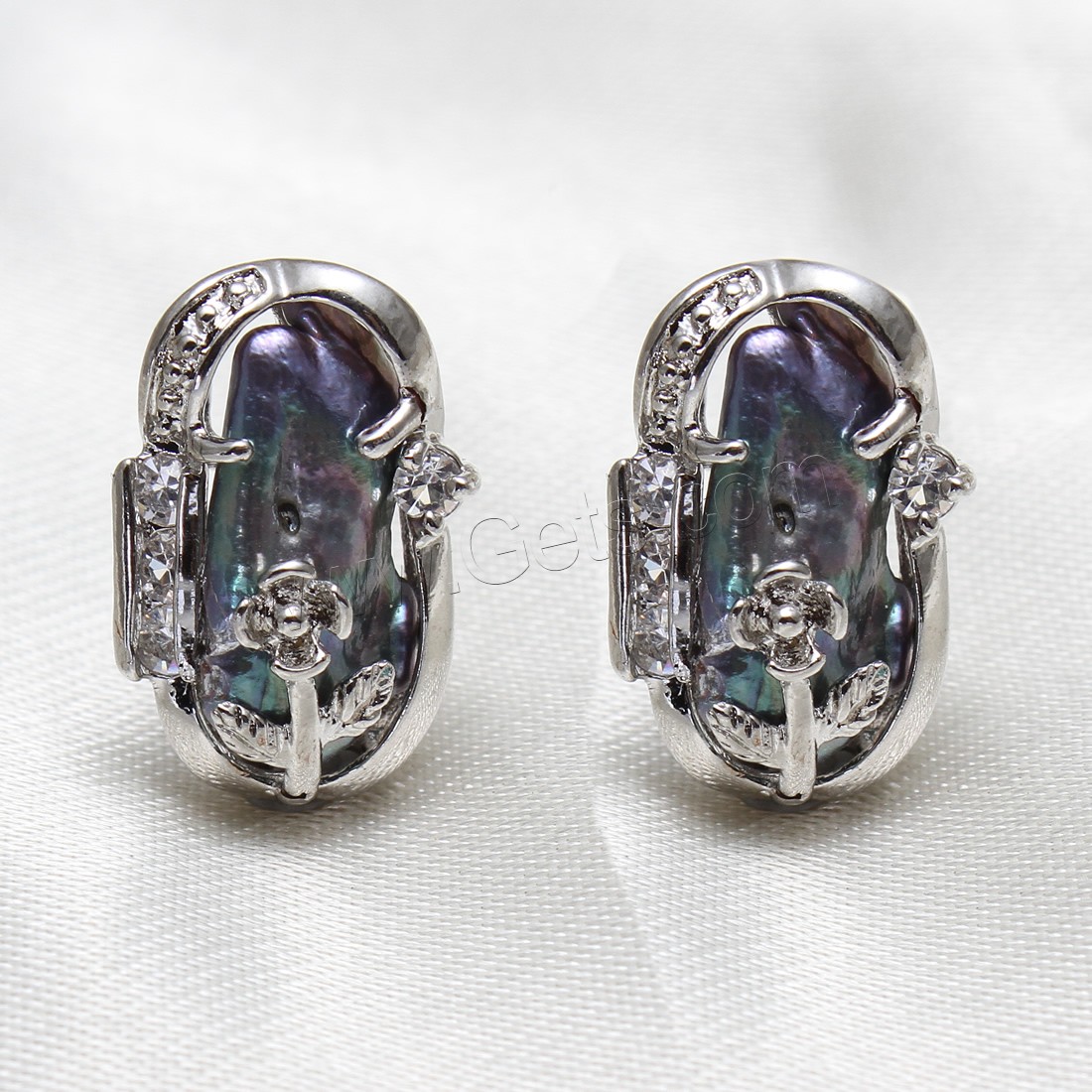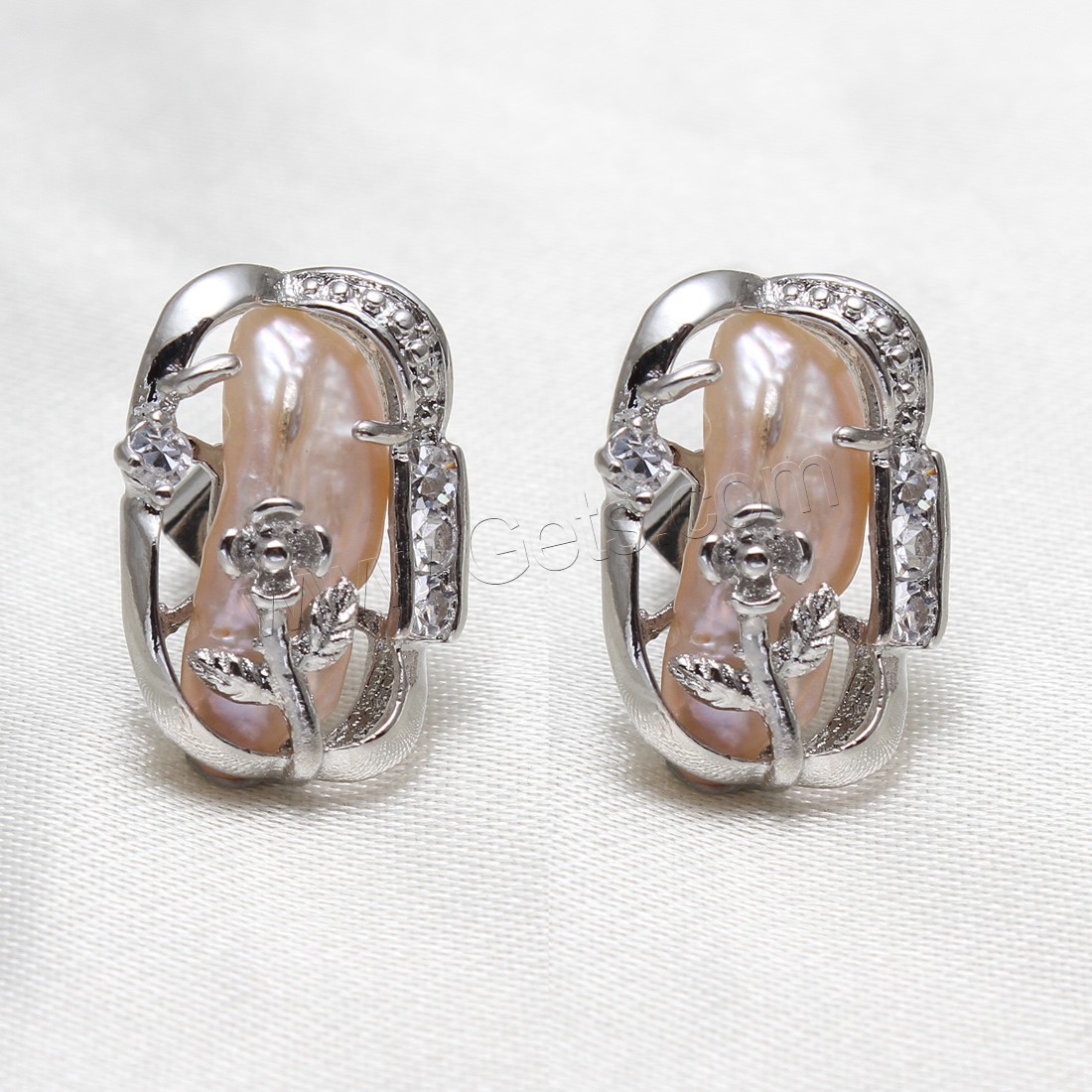 Freshwater Pearl Stud Earring, with Brass, Flower, platinum color plated, for woman & with cubic zirconia, more colors for choice, 14x20mm, Sold By Pair