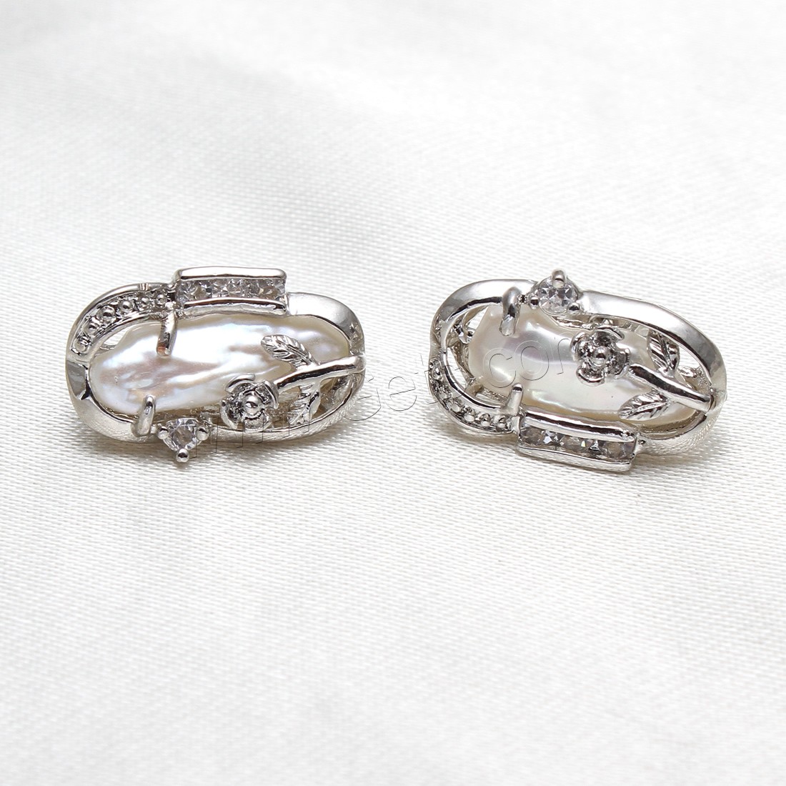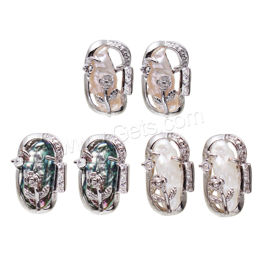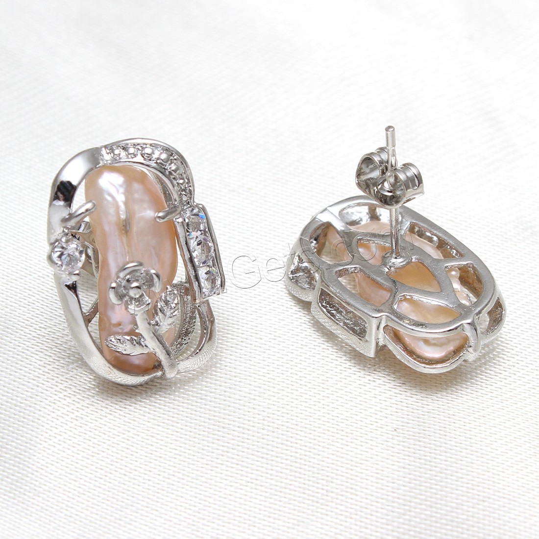 Freshwater Pearl Stud Earring, with Brass, Flower, platinum color plated, for woman & with cubic zirconia, more colors for choice, 14x20mm, Sold By Pair
