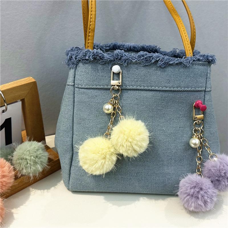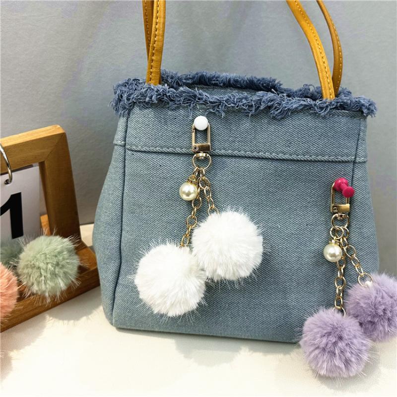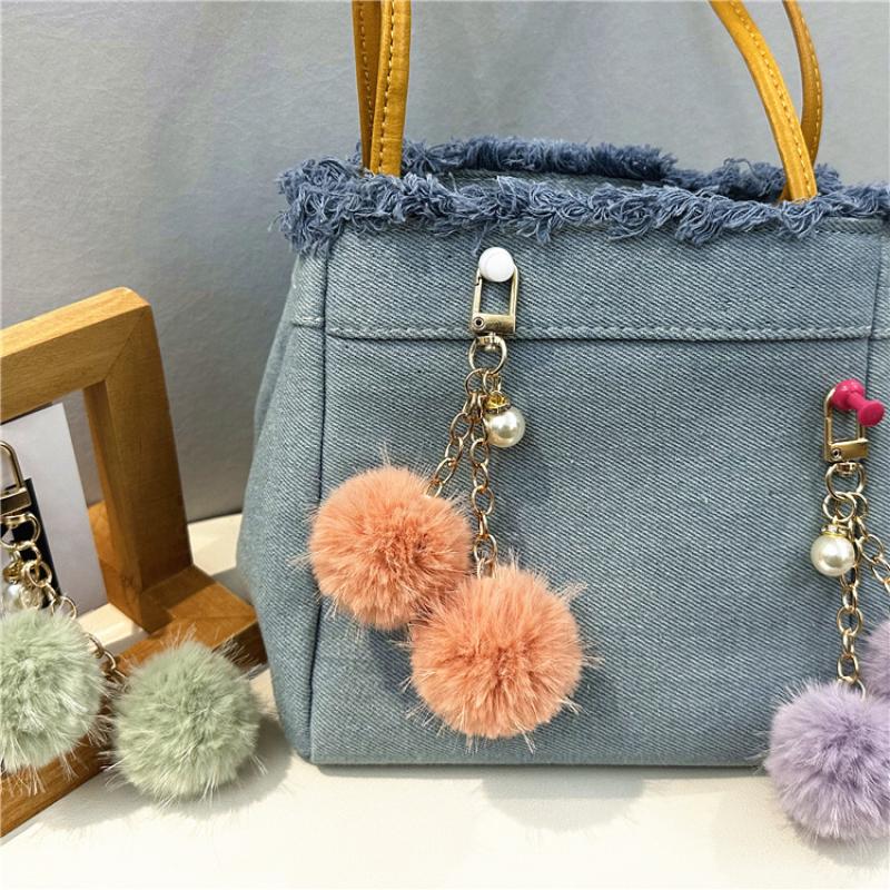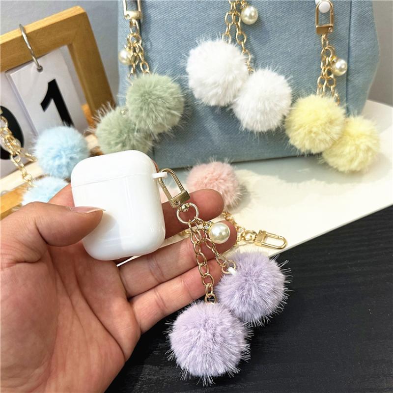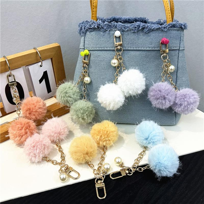 Fur Plush Key Chain, Zinc Alloy, with Polyester & Plastic Pearl, multifunctional & Unisex, more colors for choice, 125mm, Sold By PC