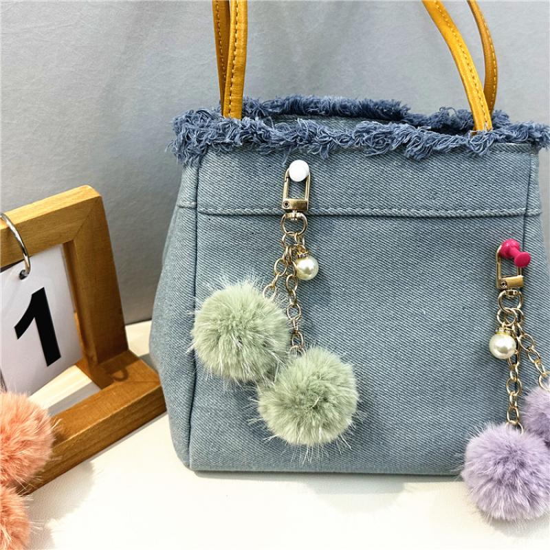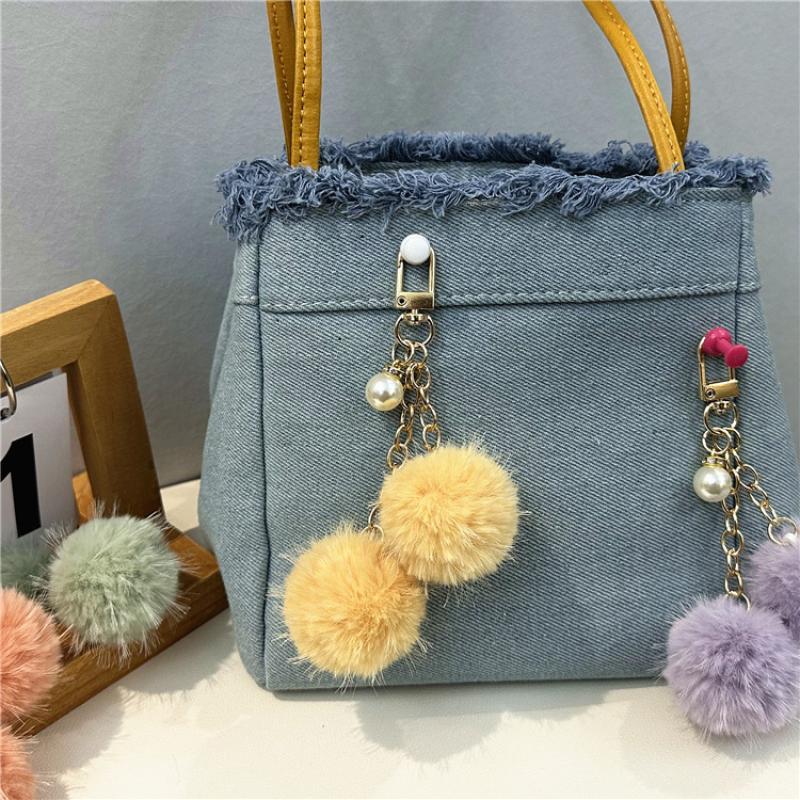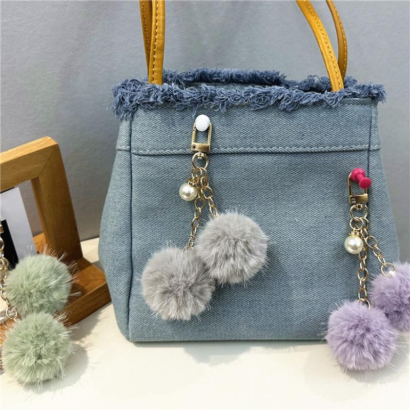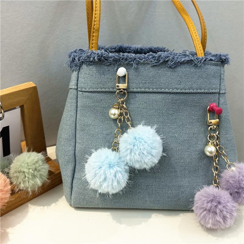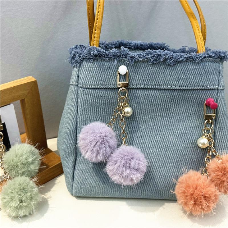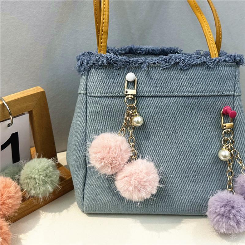 Fur Plush Key Chain, Zinc Alloy, with Polyester & Plastic Pearl, multifunctional & Unisex, more colors for choice, 125mm, Sold By PC