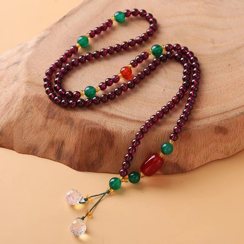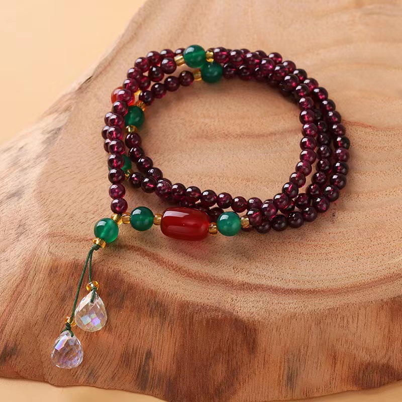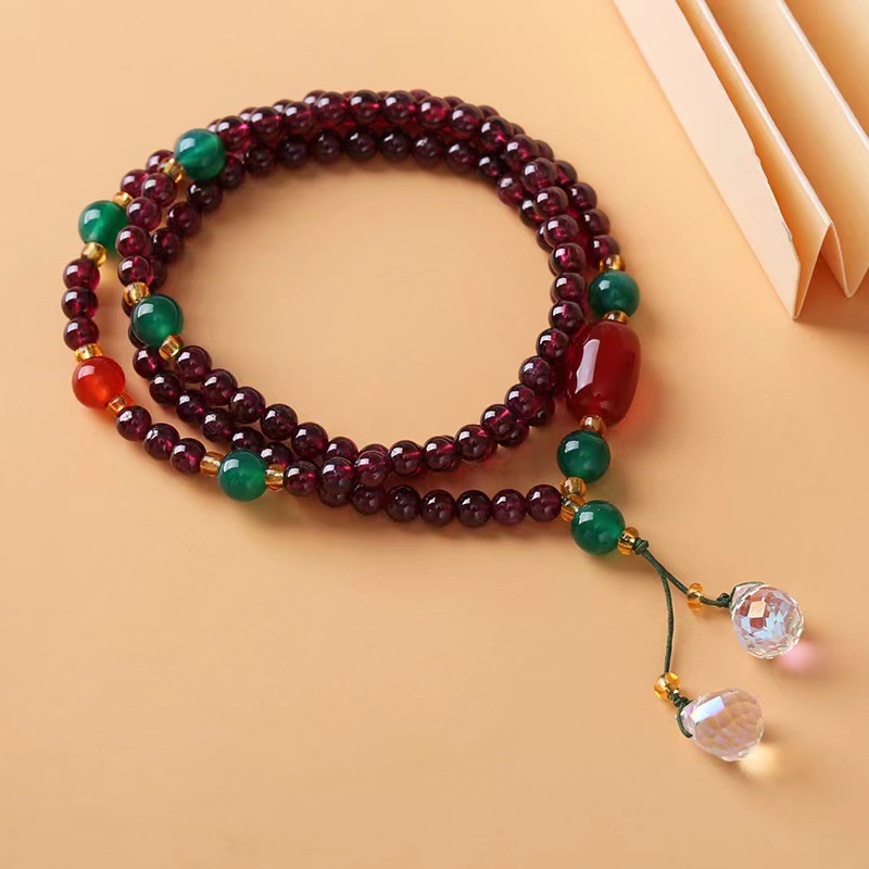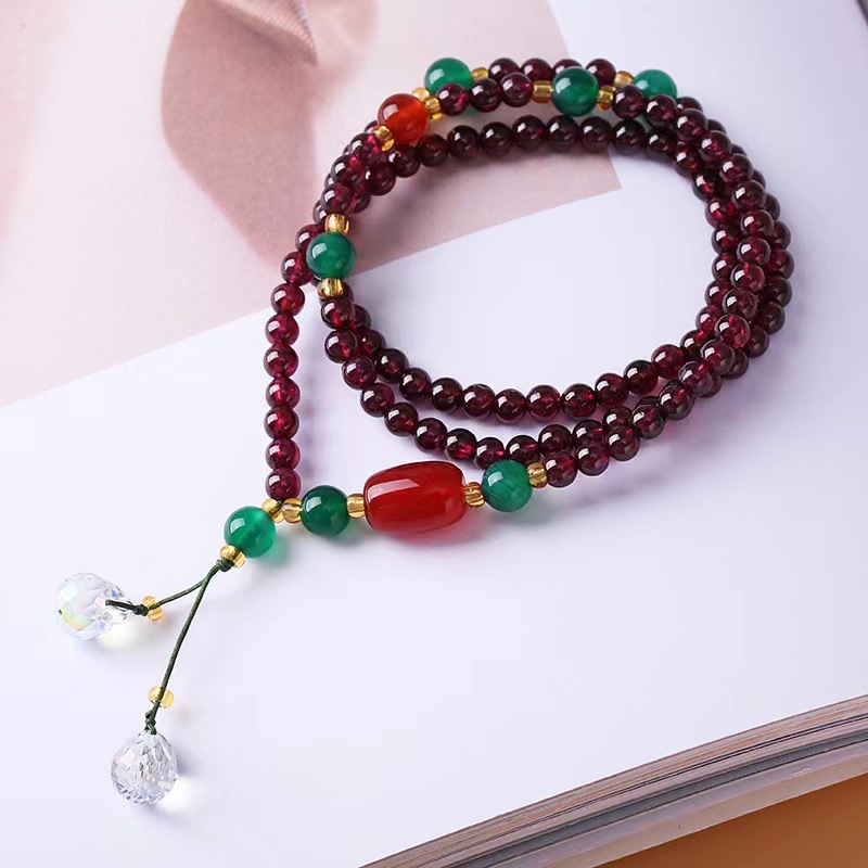 Garnet Bracelet, with Crystal, handmade, three layers & for woman, Length:Approx 18-24 Inch, Sold By PC