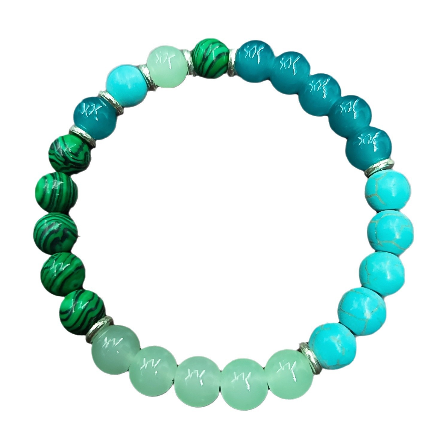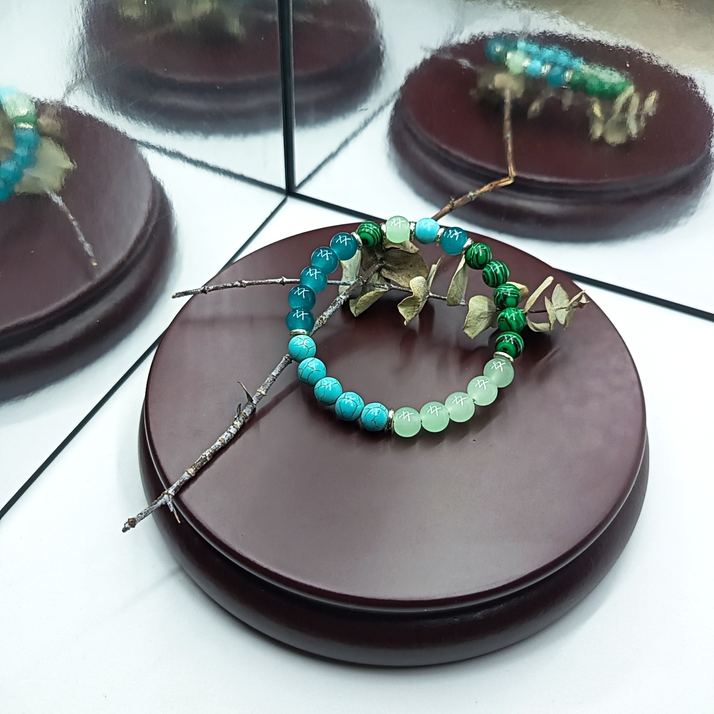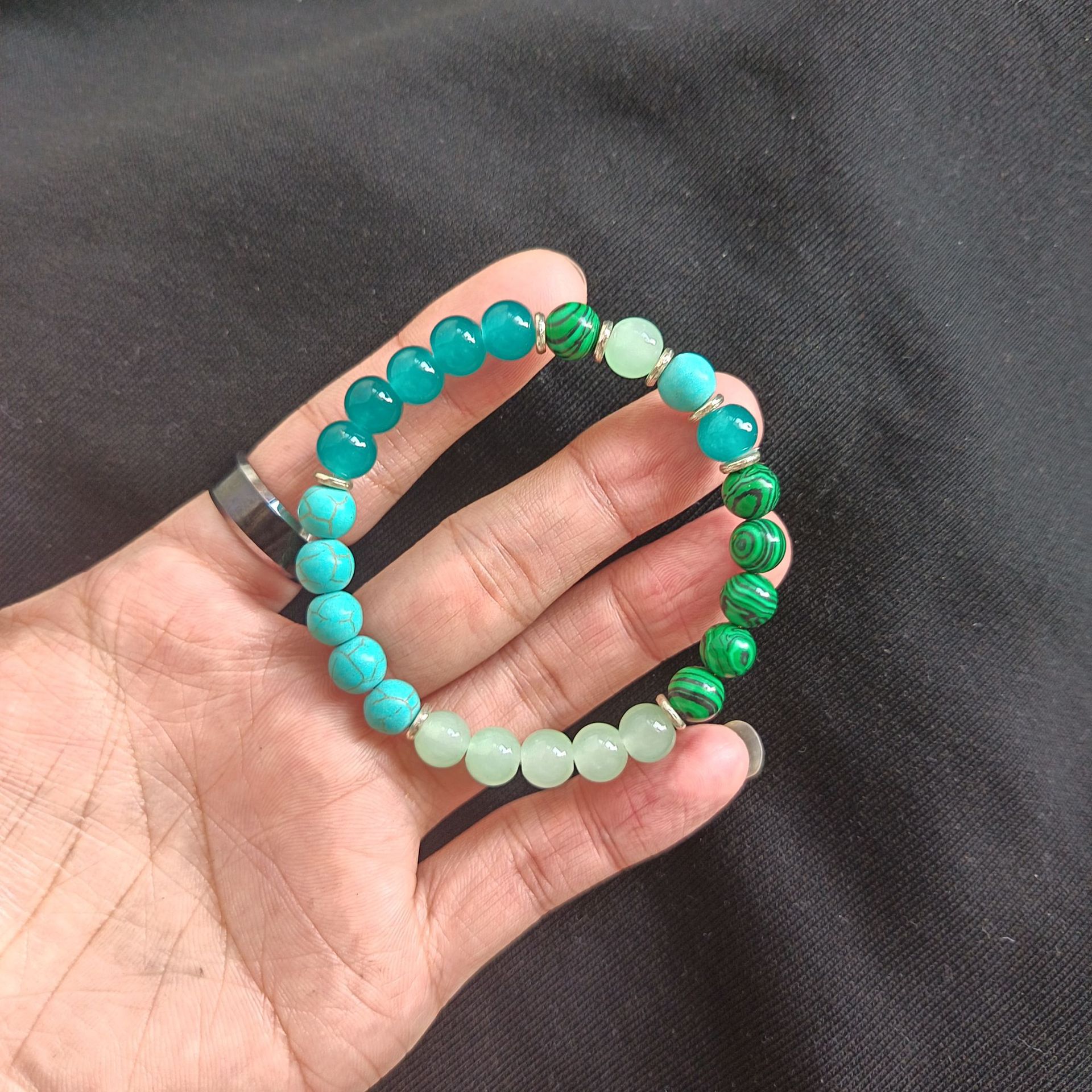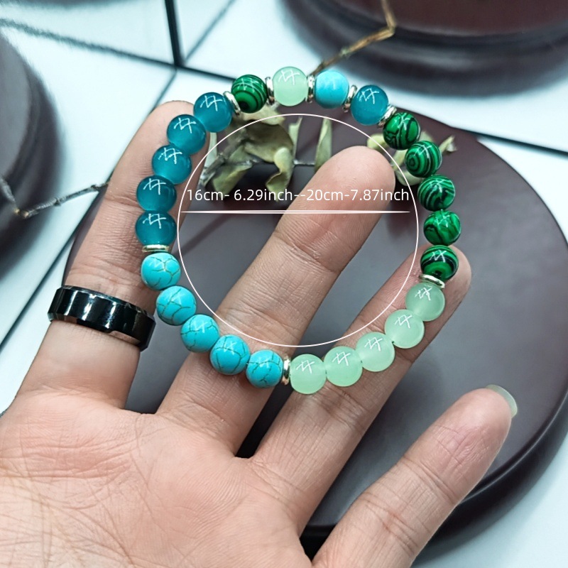 Gemstone Bracelets, Malachite, with turquoise, Round, Unisex, Length:15 cm, Sold By PC
