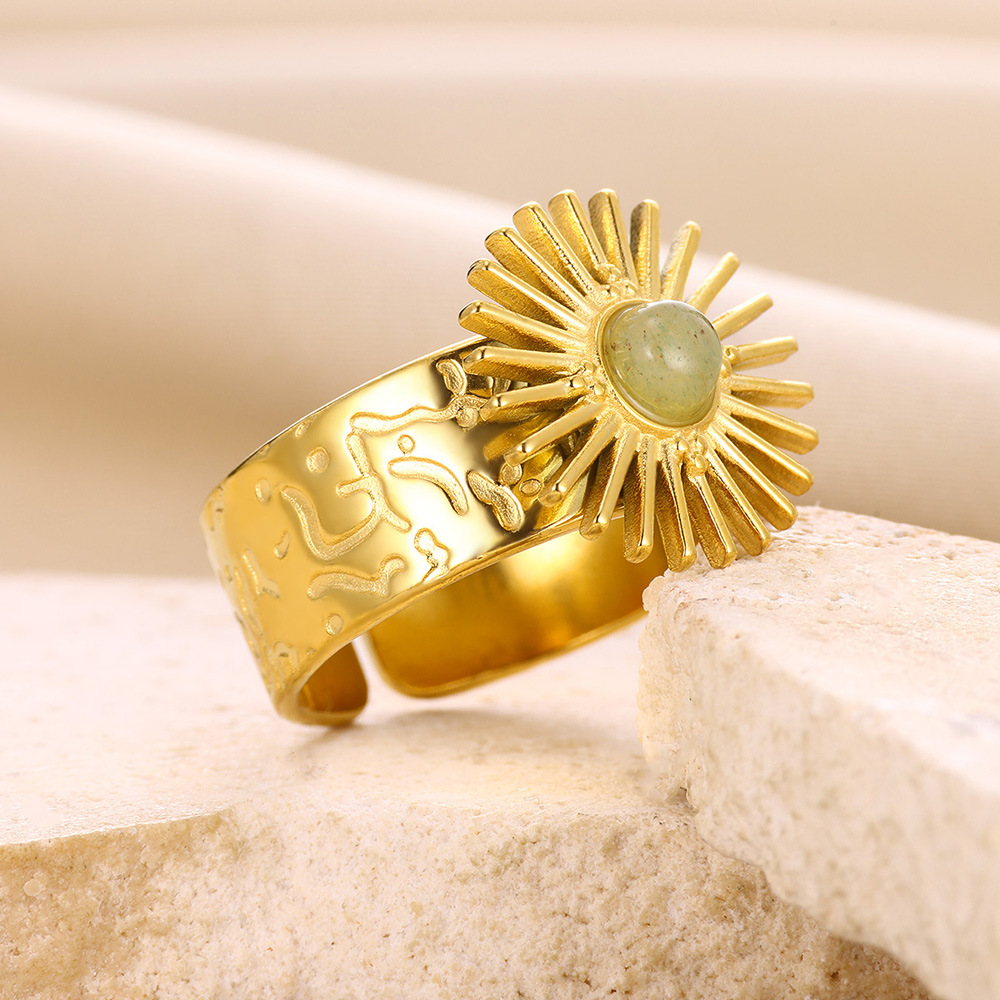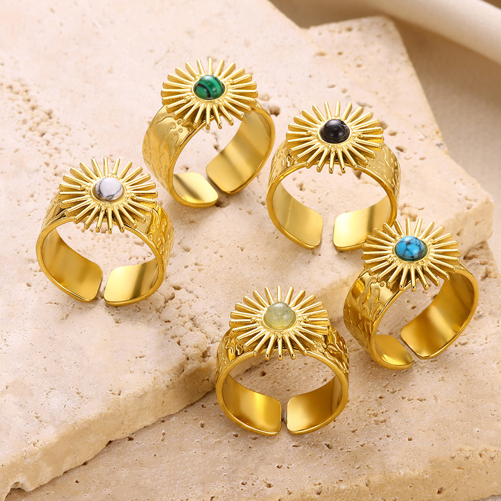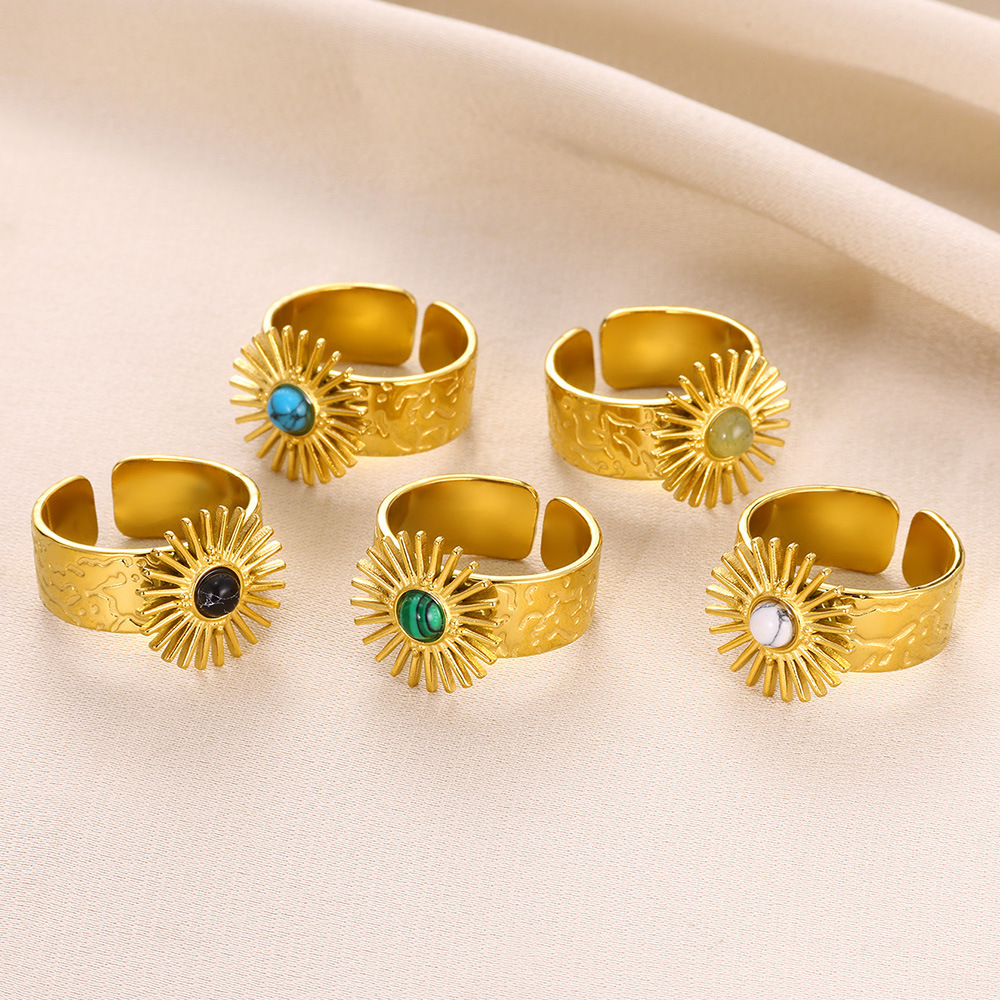 Gemstone Brass Finger Ring, with Natural Stone, Sun, gold color plated, different materials for choice & for woman, more colors for choice, Sold By PC