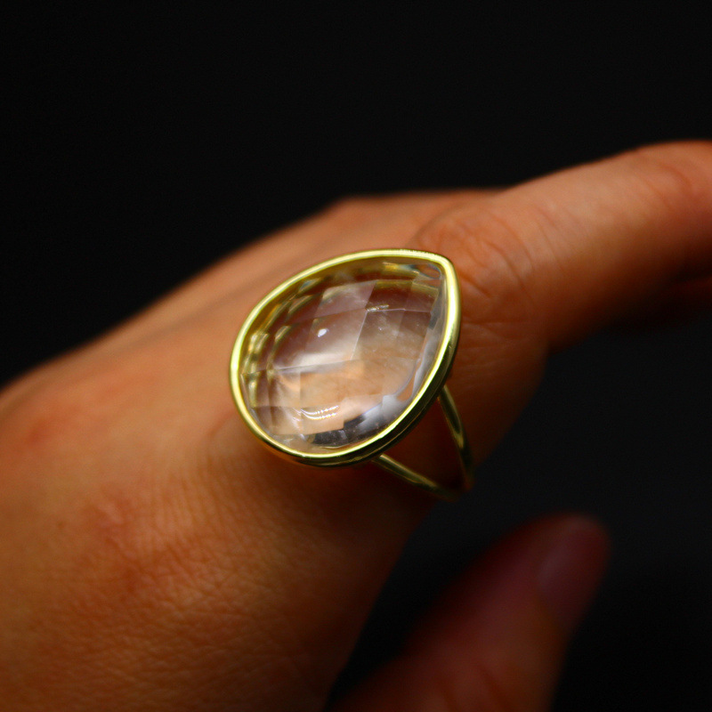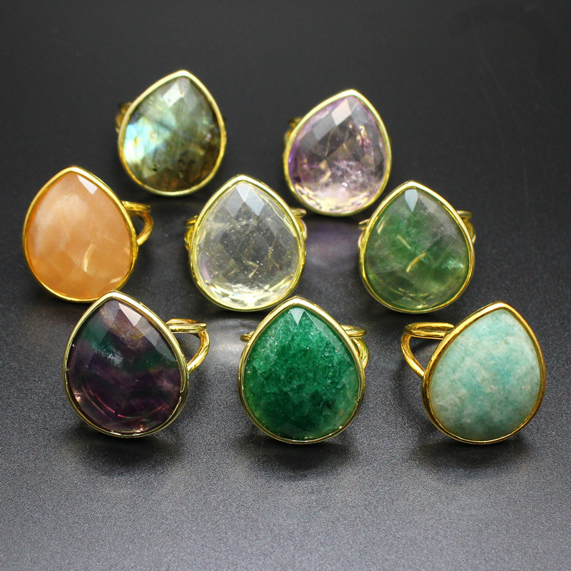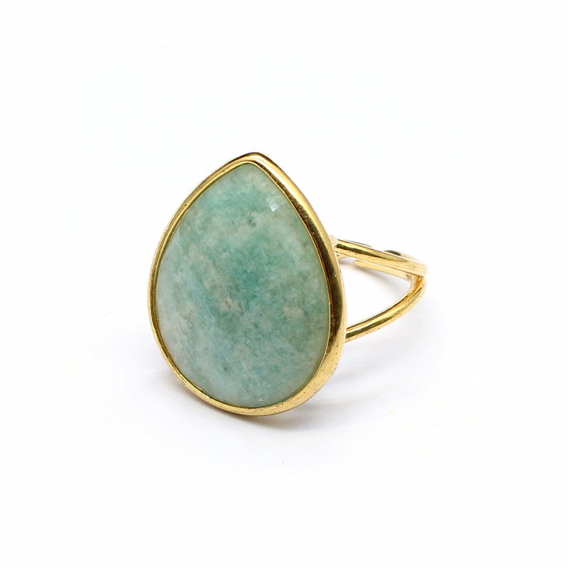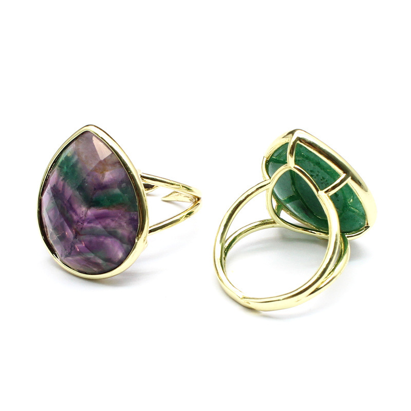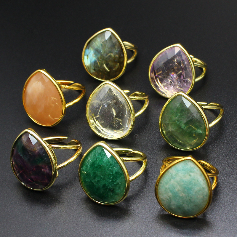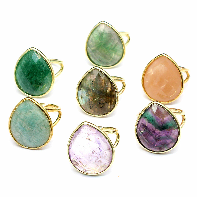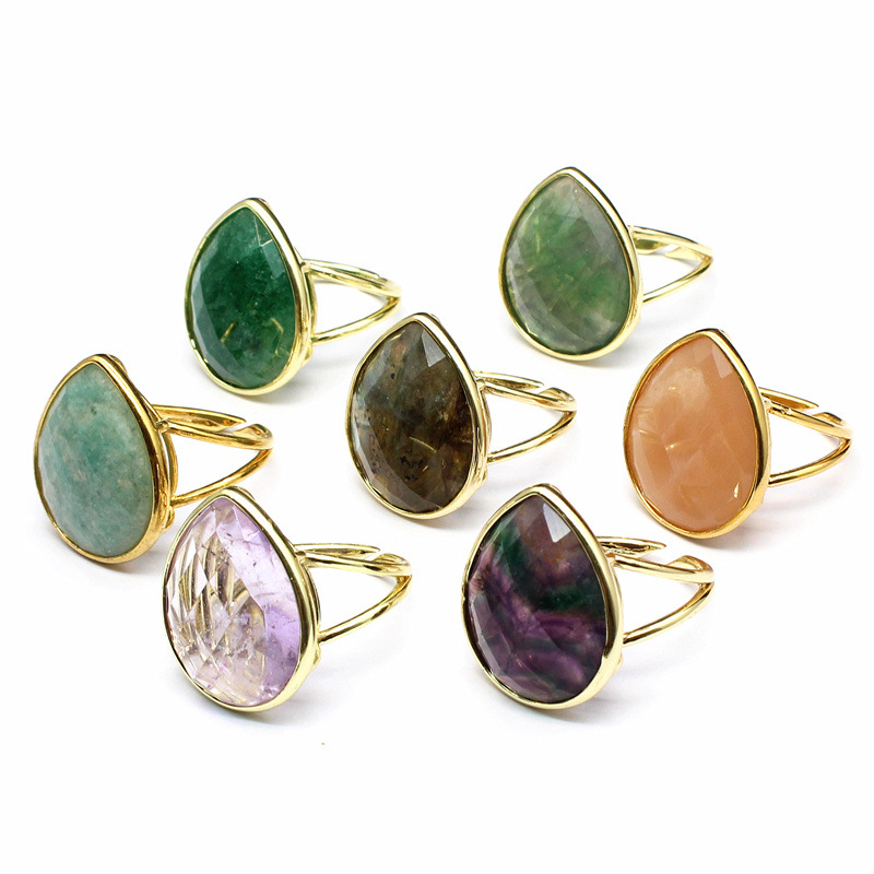 Gemstone Brass Finger Ring, with Natural Stone, Teardrop, gold color plated, different materials for choice & for woman, more colors for choice, 25x21x8mm, Sold By PC