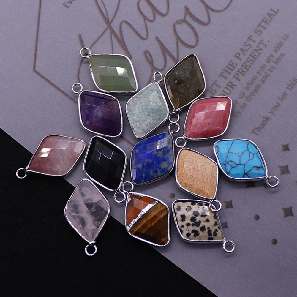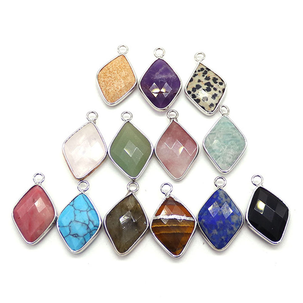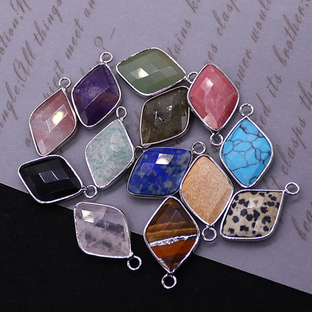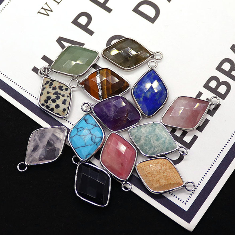 Gemstone Brass Pendants, with Brass, Rhombus, DIY & different materials for choice & faceted, 25x15mm, Sold By PC